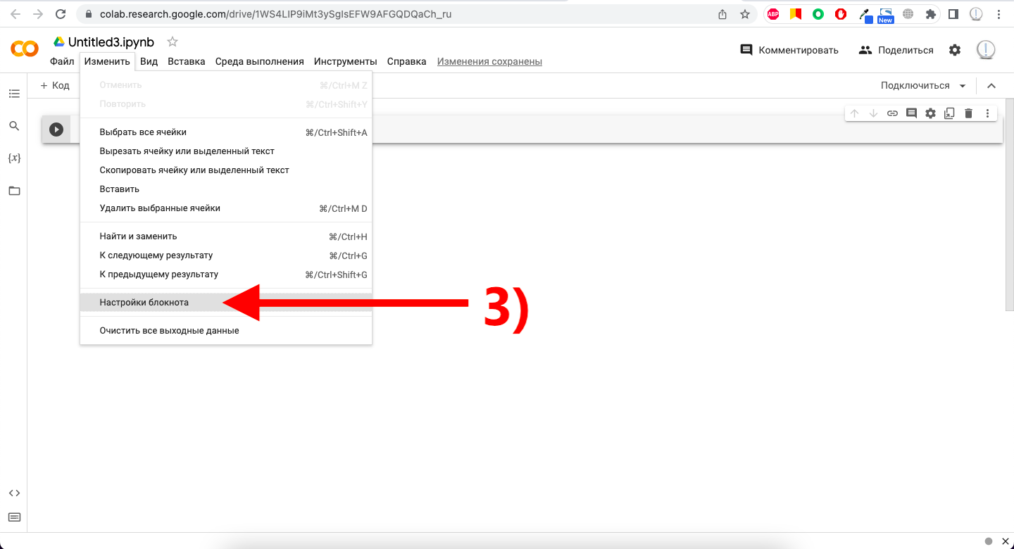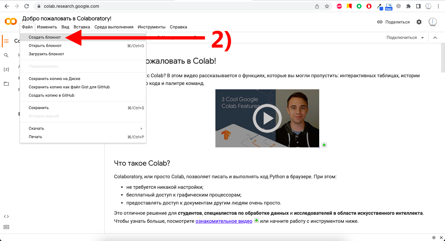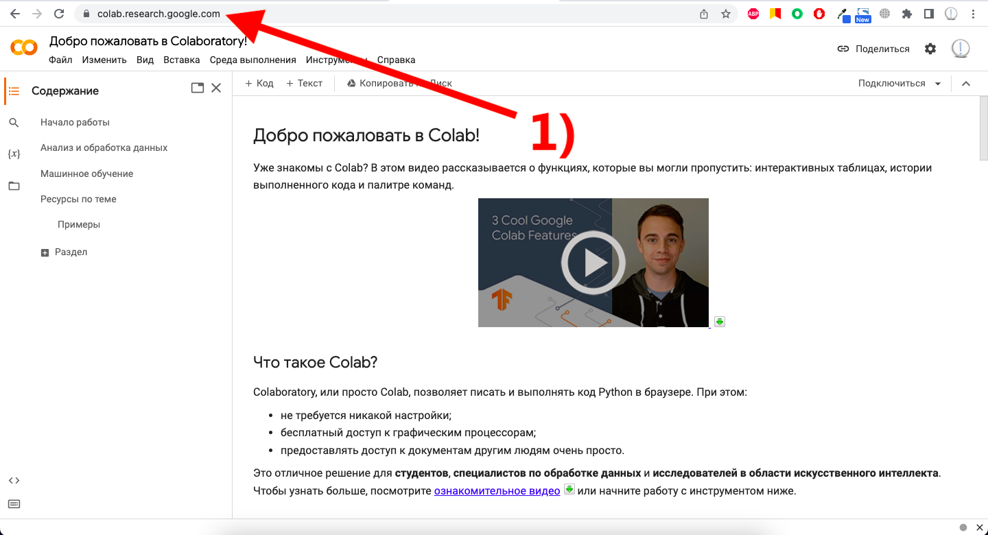 1) Переходим в среду Google Colab