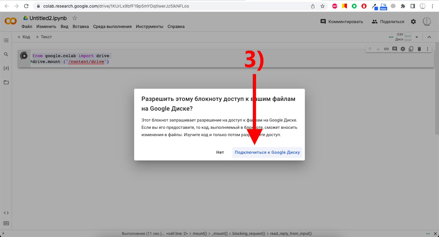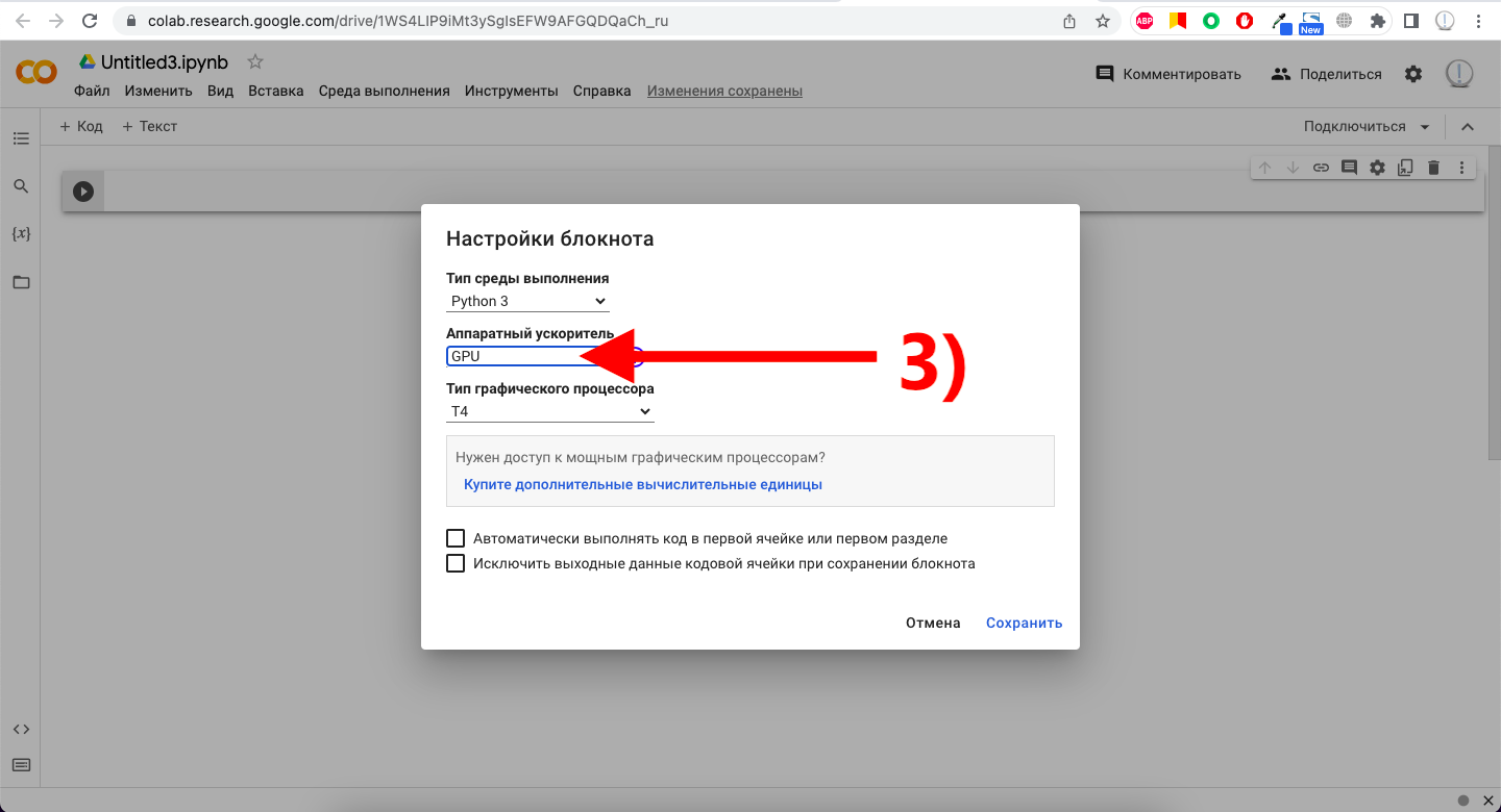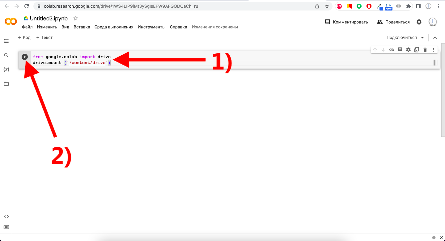 1) Переходим в среду Google Colab