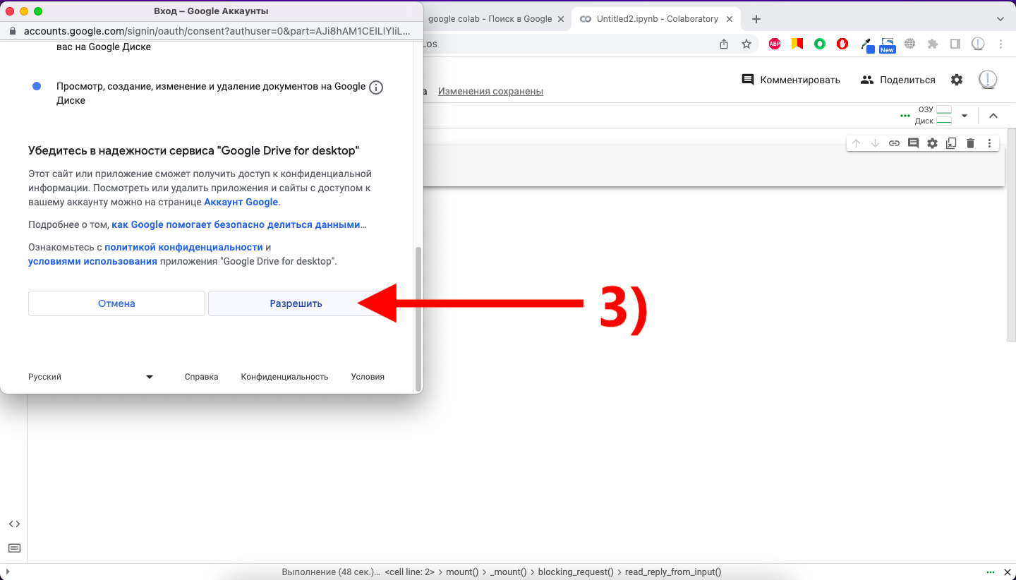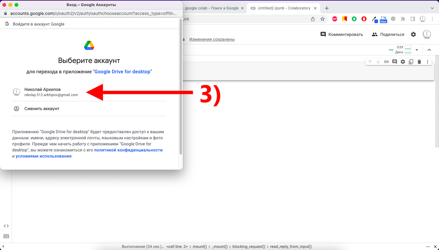 3) Соглашаемся, где нужно; разрешаем, что требуется; выполняем вход в аккаунт Google