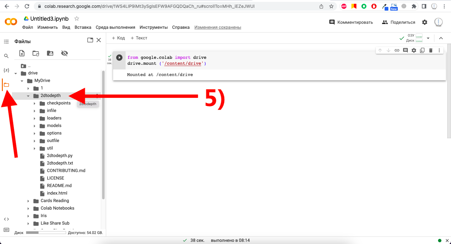 5) Проверяем наличие смонтированной папки 2dtodepth