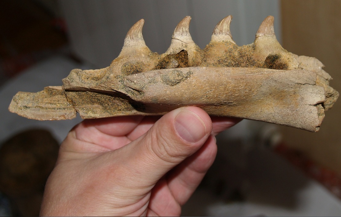 на фото Фрагмент челюсти небольшого мозазавра из Пензенской области. Фото из архива М. С. Архангельский