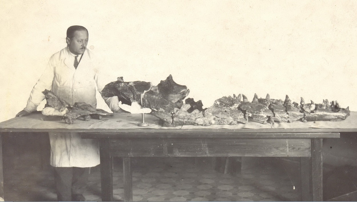 Нижняя челюсть мозазавра, добытого М. А. Веденяпиным. Фото из архива Пензенского краеведческого музея