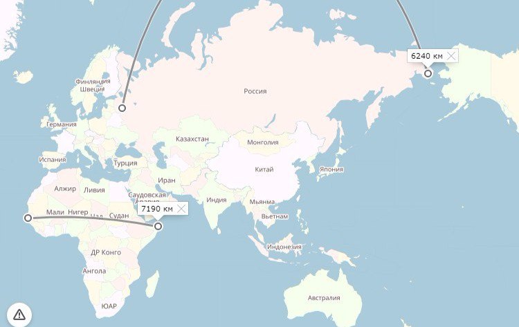 И инструмент "линейка" на карте подтверждает то, что Африка больше