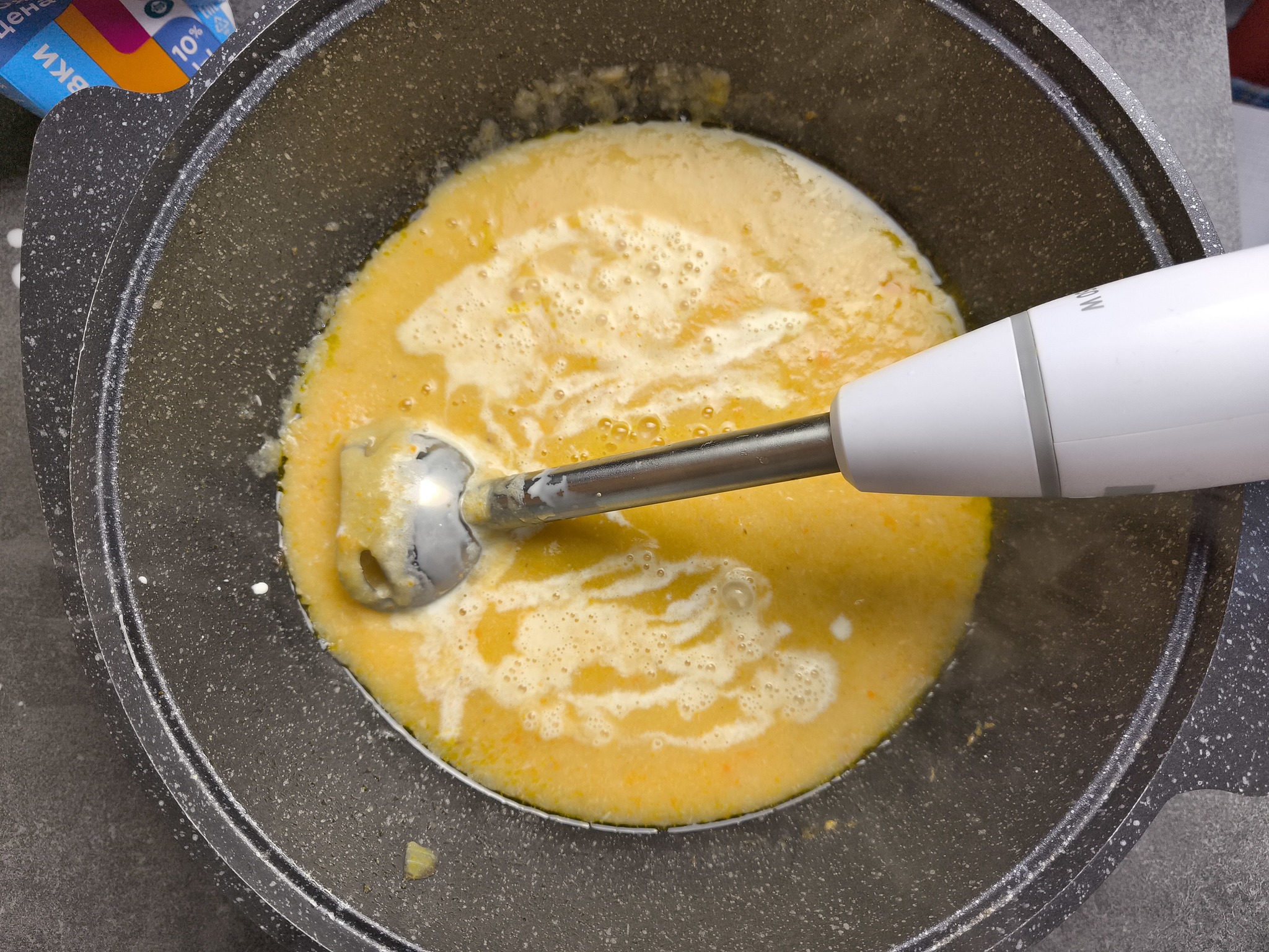 5. Теперь все вместе перебиваем блендером. Да да, вместе с куриным мясом.