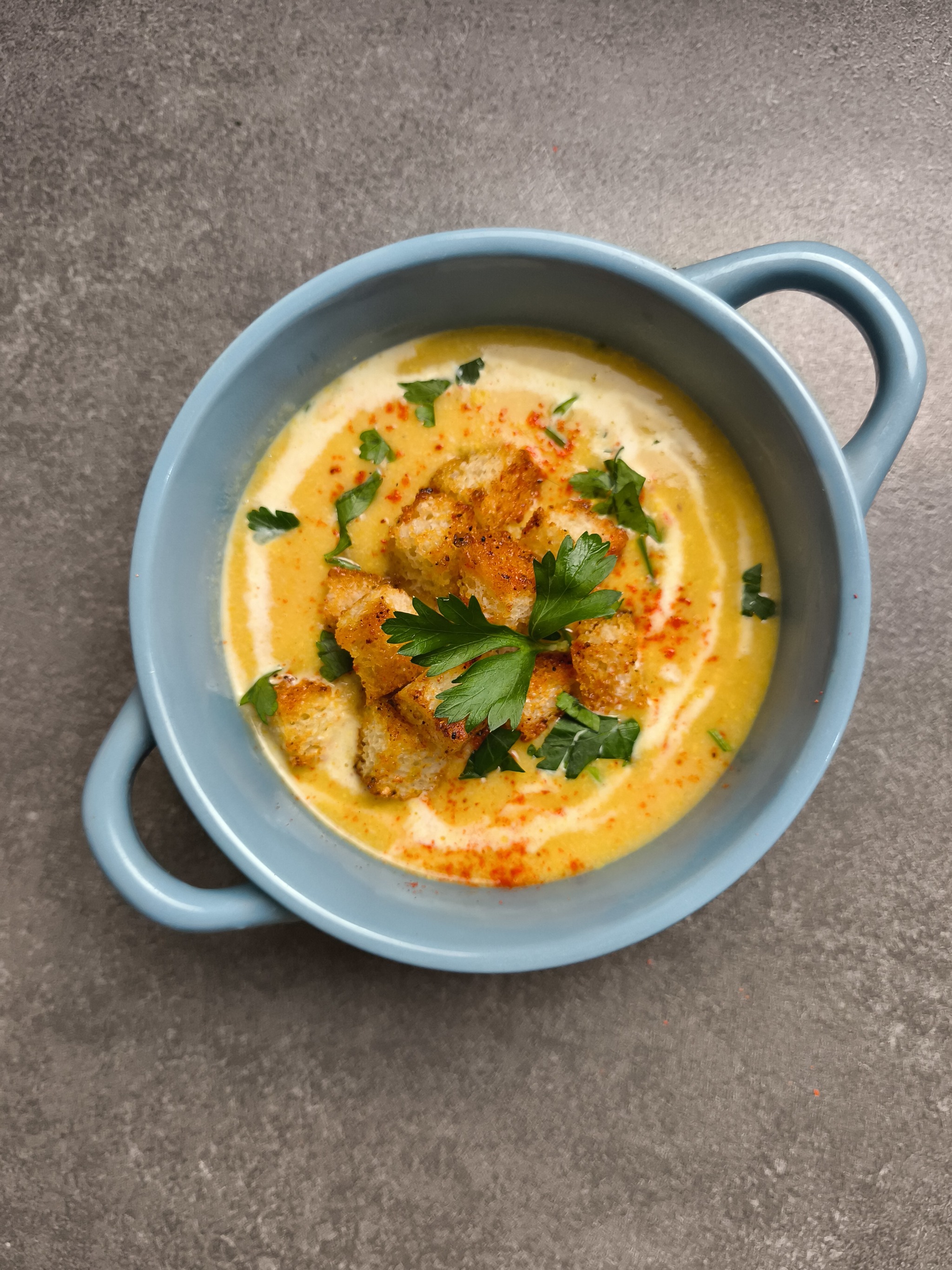 Ну и все подаем суп с сухариками, украсив зеленью и остатками сливок)