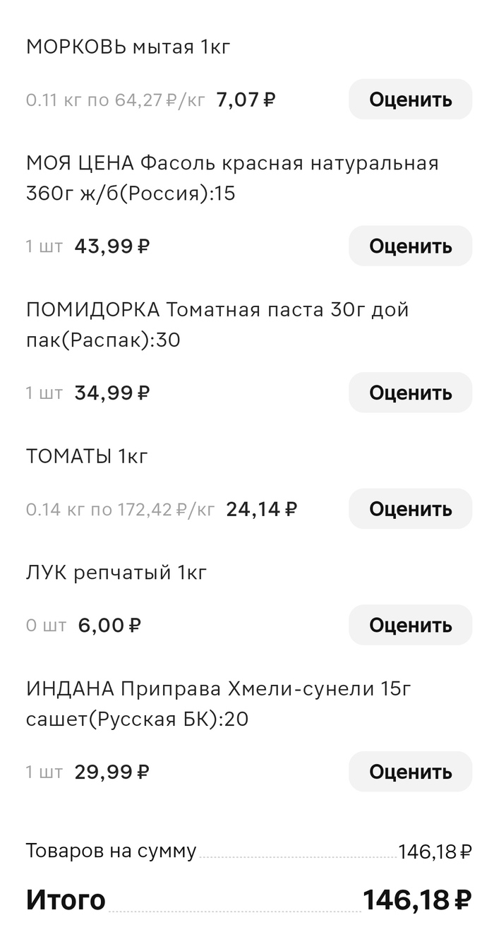 Вот чек закупки. +30 руб - кинза в ларьке с овощами.