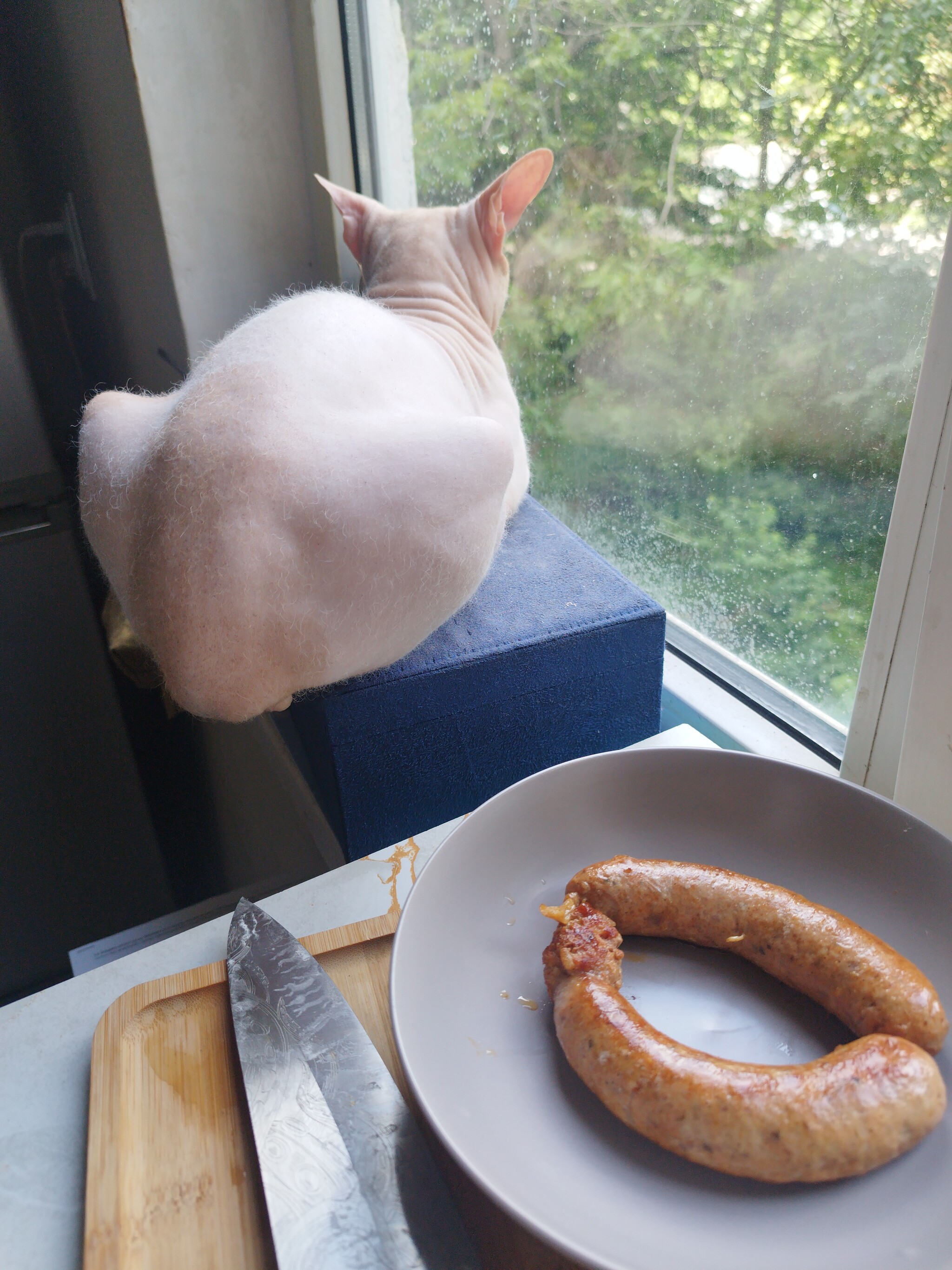 Курица моя делает вид, что купаты его не интересуют)