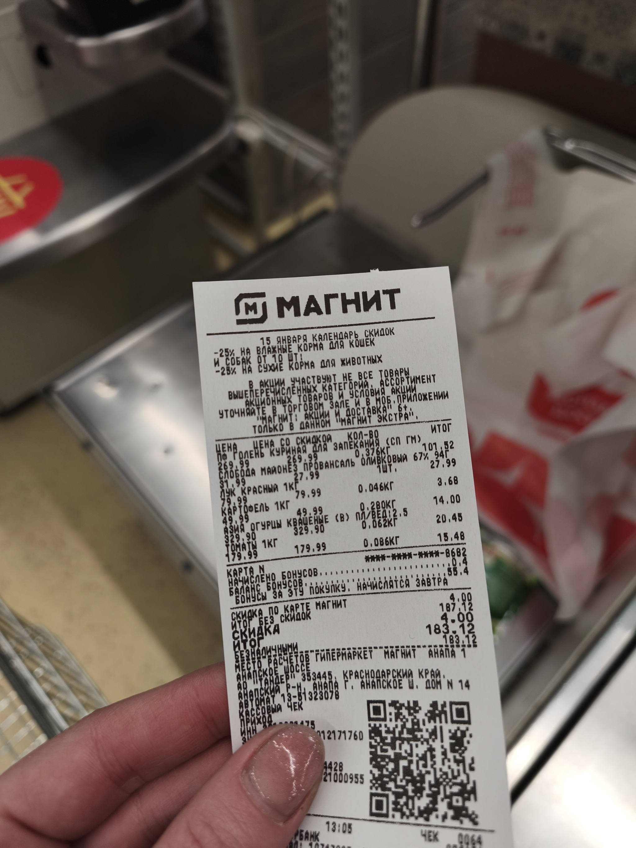 Вот вам чек на 183 руб.