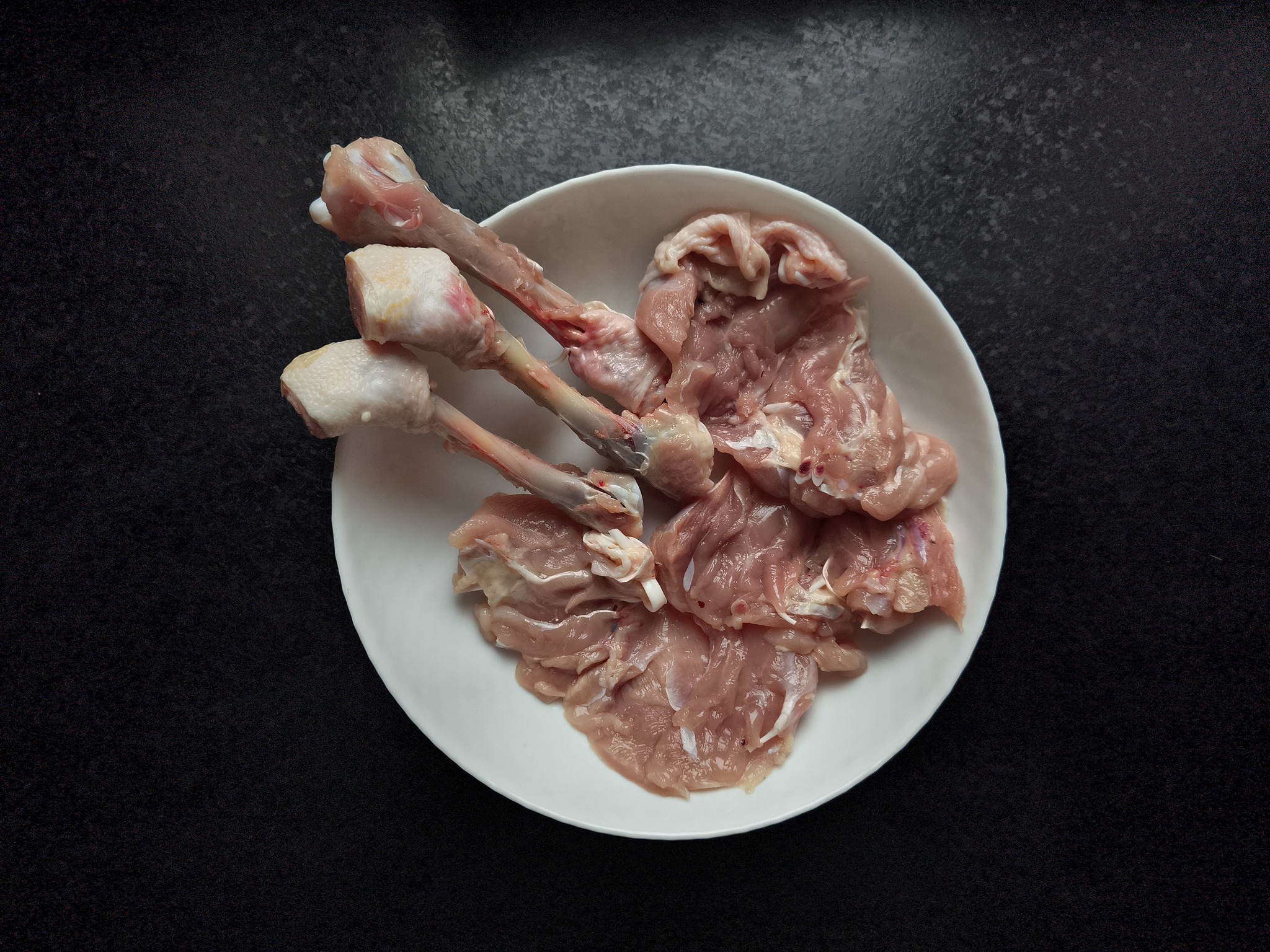 3. Срезаем куриное мясо с костей. У меня получилось 253 гр