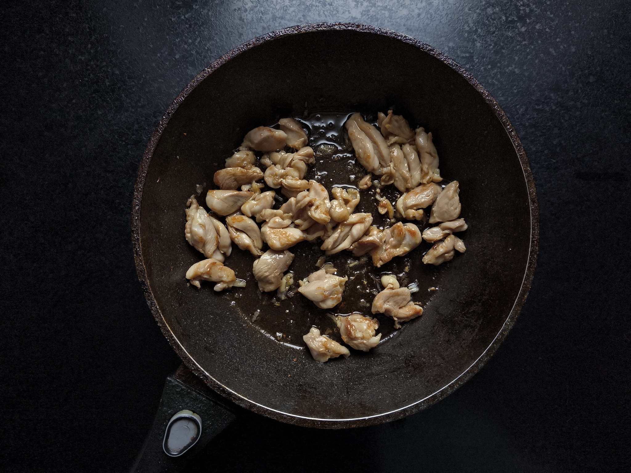 Чуть подзолотились и можно снимать с огня. Тут можно не усердствовать. После обжаривания мясо стало весить 202 гр.