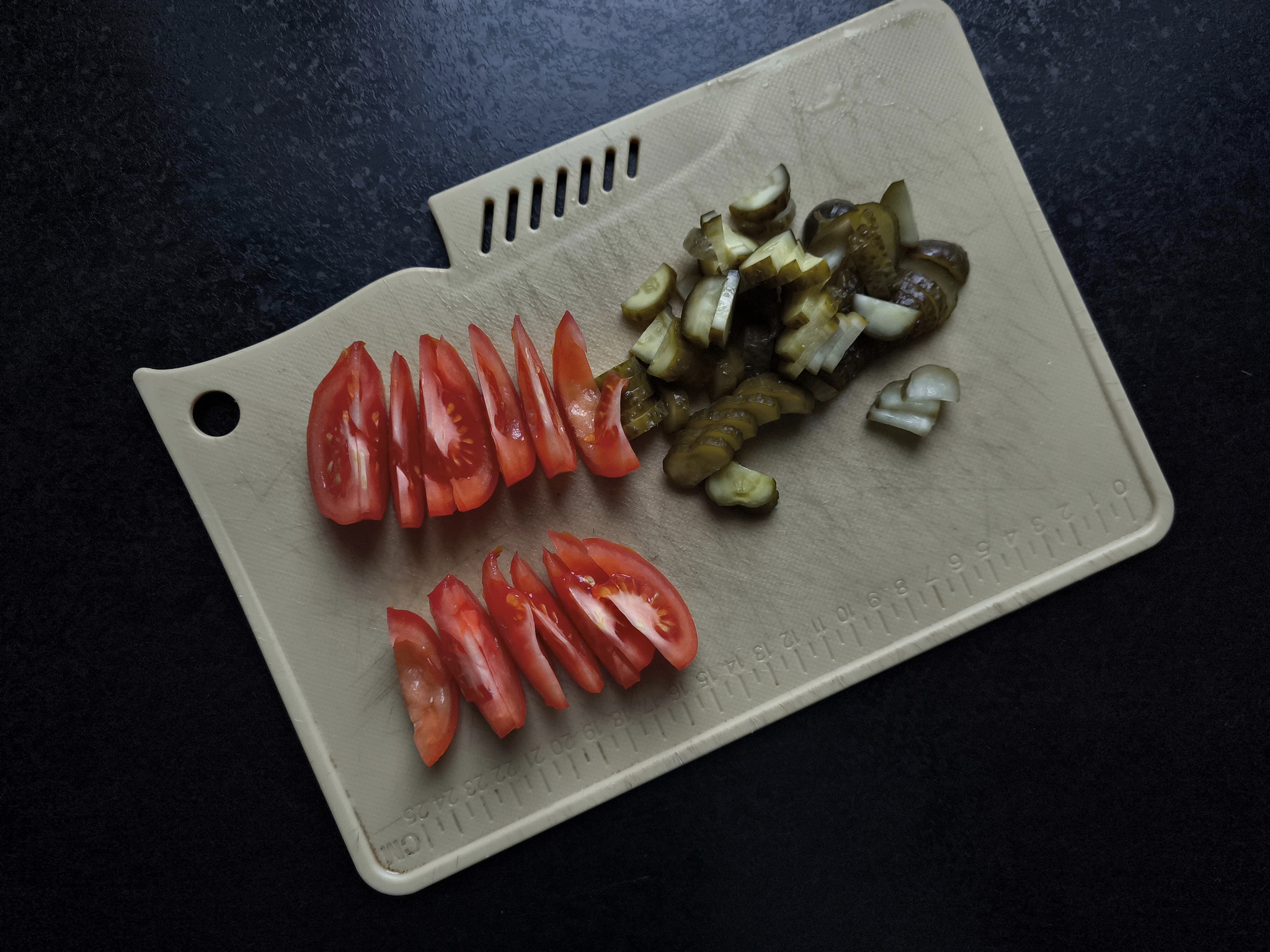 5. Огурцы и помидор режем как придется