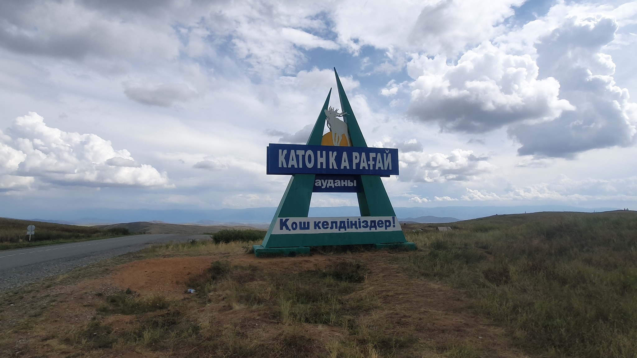 Подъезжая с русской парой к началу отворота на староавстрийку, я узрел огромную серую тучу, которая заволокла небо. (С местными русскими ездить по-интересней, т.к. они понимают прикол в путешествиях. Казахи же часто спрашивают: "а тебе за это государство денег даёт? А кто-то тебя спонсирует? А зачем тогда пешком ходить с таким тяжелым рюкзаком?") Выходил я из машины уже в стену дождя.