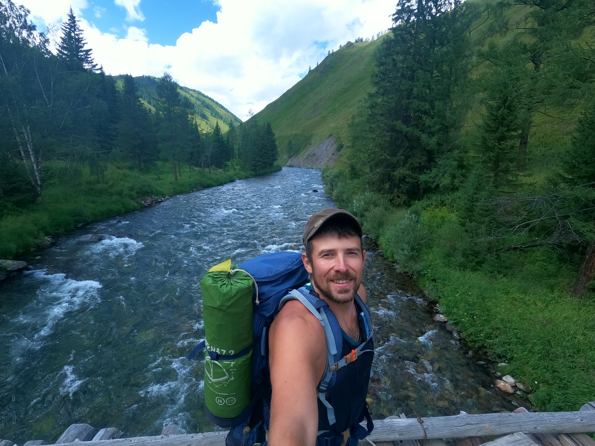 Переночевал по пути на Рахмановские ключи на берегу речки. Ночь и утро шёл дождь, и судя по небу, стало понятно, что ясной погоды в горах не ждать этот день. Топать в дождь и не увидеть Белуху даже с Рахмановского озера - перспектива такая себе. Забил и на это озеро, и повернул назад в сторону староавстрийки.