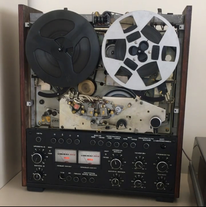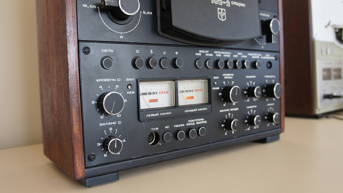 На фото выше вы можете лицезреть катушечный магнитофон «Илеть 102-1 стерео», это полный магнитофон, тобеж со встроенным усилителем звуковой частоты (пассивные колонки можно включать прямо к выходу магнитофона, в соответствующие гнезда). Выпускался он в СССР в городе Волжск в середине 80-х, представленный экземпляр 1986 года выпуска (судя по маркировке деталей). Модель 102 говорит нам, что это аппарат первой группы сложности, по советской градации, выше только нулевой класс (высший), оснащён аппарат был, как уже упоминалась мною ранее, встроенным усилителем мощности звуковой частоты на 15Вт номинальной и 35Вт максимальной мощности при сопротивлении акустических систем в 4Ом, с возможностью воспроизвести практически весь частотный диапазон слышимый ухом человека от 31,5 до 20000Гц! Имел 3 магнитные головки (стирающая, записывающая, воспроизводящая - слева на право, последние 2 из высококачественного пермалоеаого сплава) двухскоростной лентопротяжный механизм с роликовым приводом тонвала (самый важный элемент протяжки для магнитофона, от его качества изготовления зависит львиная доля конечного звуковоспроизводящего тракта аппарата) 19 и 9 см/с соответственно. Небольшая ремарка (ну или донцовка, кому как понятнее), в те годы самым качественным устройством записи/воспроизведения речевых и звуковых фонограмм была именно магнитная звукозапись, по этому промышленность была заинтересована в постоянной модернизации устройств и в гонке за выходными параметрами, что в итоге вытекало в широкий ассортимент продукции от разных заводов необъятного советского союза! Аппараты были практически на любой карман и вкус (здесь я имею ввиду только катушечники, с кассетниками дела обстояли по хуже…)! Все же вернёмся именно к этой модели, несмотря на внушительные цифры, есть в нем и ряд недостатков, которые были видны и рядовому пользователю, даже в те годы - одномоторный привод, механическое управление ЛПМ, невозможность установки катушек более 18см в радиусе, сложная механическая система привода и перемоток на рычагах и пассиковых приводах (стоило немного сбиться настройкам натяжения и начинались проблемы с перемоткой и подмоткой), аппарат проходил по старому ГОСТу и селектор входов имел на тот момент устаревшую градацию входных сигналов (приёмник 10мв, звукосниматель 250мВ, трансляционная сеть 15В, микрофон 5мВ), у конкурентов уже были трёхмоторные приводы и более востребованные входы для записи/воспроизведения в 500мВ в количестве от 3х гнёзд (Ростов 105, Союз 110, Илеть 110). Однако, несмотря на дороговизну и отставание в прогрессивности, аппарат снискал добрую славу у меломанов 80х, благодаря своей мягкой и насыщенной тембральной окраске подаваемого музыкального материала, меломаны по сей день спорят, заслуга ли это роликового привода или схематический гений инженеров электронщиков!? Скорее всего - все вместе.