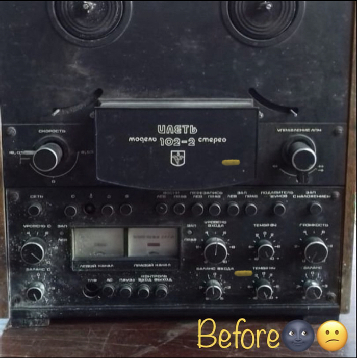 Немного лирики и ретроспективы, если чЁ - перемотай, я не в обиде: на дворе шел 2021й год, мне вот-вот стукнул 32-ой годик детства, ступил месяц Октябрь, бабье лето кончилось внезапно и пылкое южное солнце, как-то разом перестало греть, хмурые осенние дни замелькали ровной чередой дождей и по душе разлился кислый вкус осенней хандры... Вот уже более 1,5 лет я сидел без постоянного места работы, перебиваясь шабашками по ремонту всякой электронной всячины (ноутбуки, смартфоны, и почие DVBT-T2 тюнера, акромя примусов есссстесвеноо), денег было впритык ( даже для холостяка!), но мы с котом не унывали, было уйма времени на хобби, видюшки в ютубе, Геральта из Ривии, Фус ро дааа и прочее мракобесие:) И тут случилось, то, что случилось - я заболел ковидом (суровая дельта) в первый раз за все время! Ощущения ни словами описать, ни пером описать, я до сих пор хз как меня угораздило и как я остался там где остался, но не суть… Через месяц я более менее оправился (страшно сказать, но даже кот захворал, чихая и надувая пузыри из ноздрей! П.С. Кот тоже в порядке, выздоровел.) И тут я понял, что душа и руки снова просят лекарство от скуки - надобно шаманить ретро крутилки и вертелки! На авито, в моем родном Ростове я наткнулся на объявление о продаже сего сабжа за смешные 1500р, созвонился с продавщицей, приехал и забрал его и тут начался этап по уходу моих забот и духовных метаний в перевоплощение сего уродца, если не в Принцессу Дайнерис, то не менее чем в мадам Де Пампадур. Хранился апп у хозяев в подсобке на открытом воздухе и чуток подустал, это видно на фото ниже: