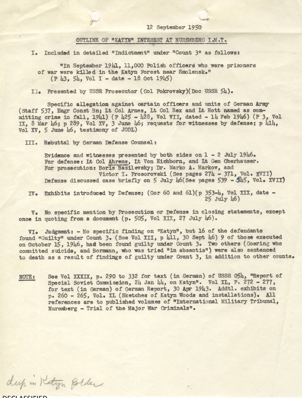 Для @MaxsimilianLi и прочих "катыноведов", отрицателей решения Международного Нюрнбергского военного трибунала. . Документ с сайта Национального управления архивов и документации (National Archives and Records Administration, NARA) правительства США. 12 сентября 1950 года. “Катынское дело на Нюрнбергском процессе”.