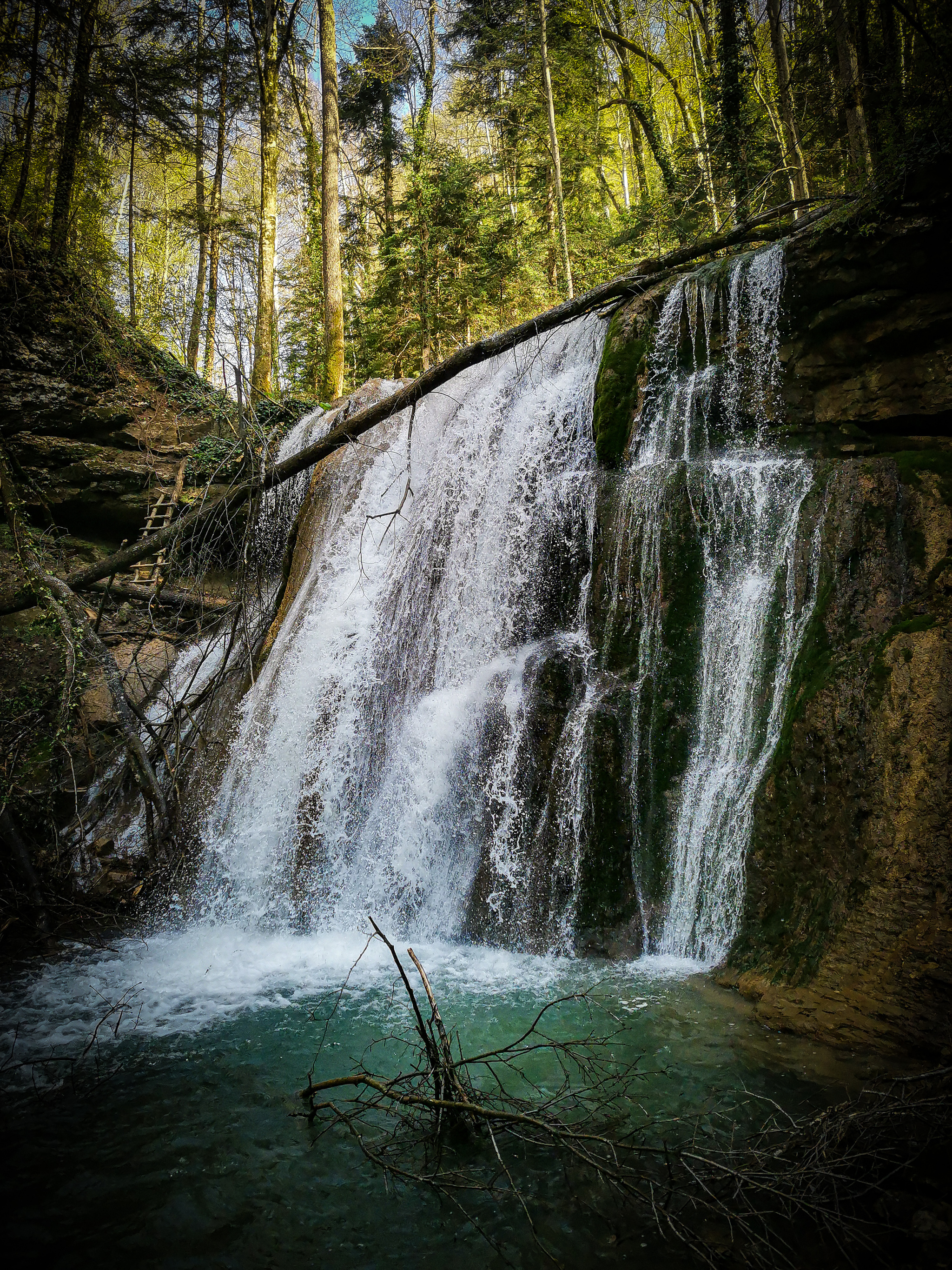 Чапаем дальше «вдоль» ручья и попадаем на основной, большой каверзинский водопад. Тут уже есть чувство размера( смотрим на лестницу слева, что б масштаб оценить)