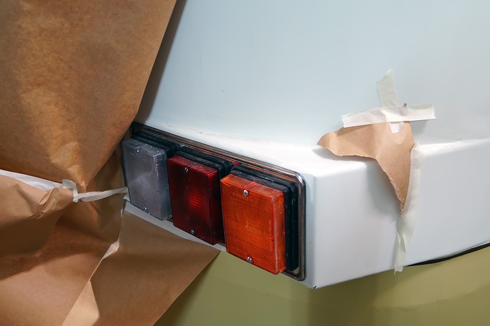 На момент визита заканчивали работы по окраске: маляр наносил недостававшие полосы на корму и водительскую дверь.