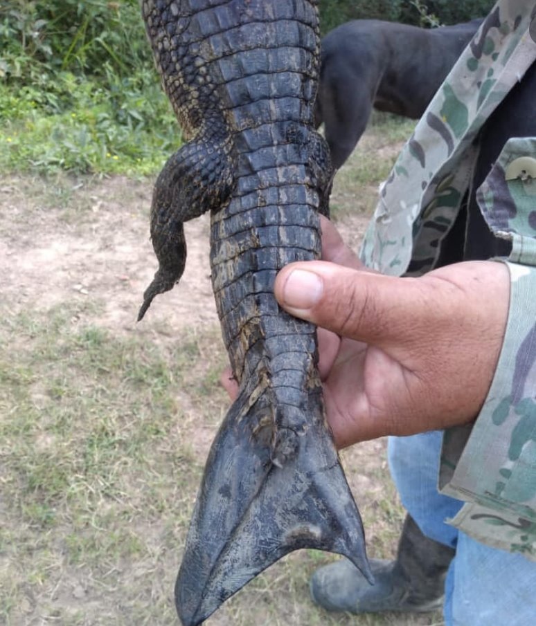 В Южной Америке поймали каймана с раздвоенным хвостом.