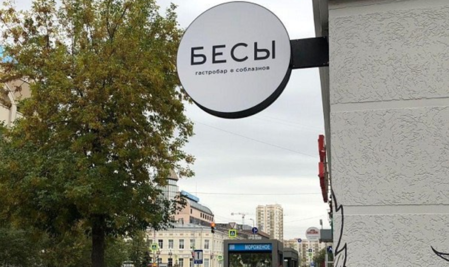 Отмечается, что вывеска «Гастробар соблазнов “Бесы”» появилась на доме на улице Хохрякова в центре уральской столицы.