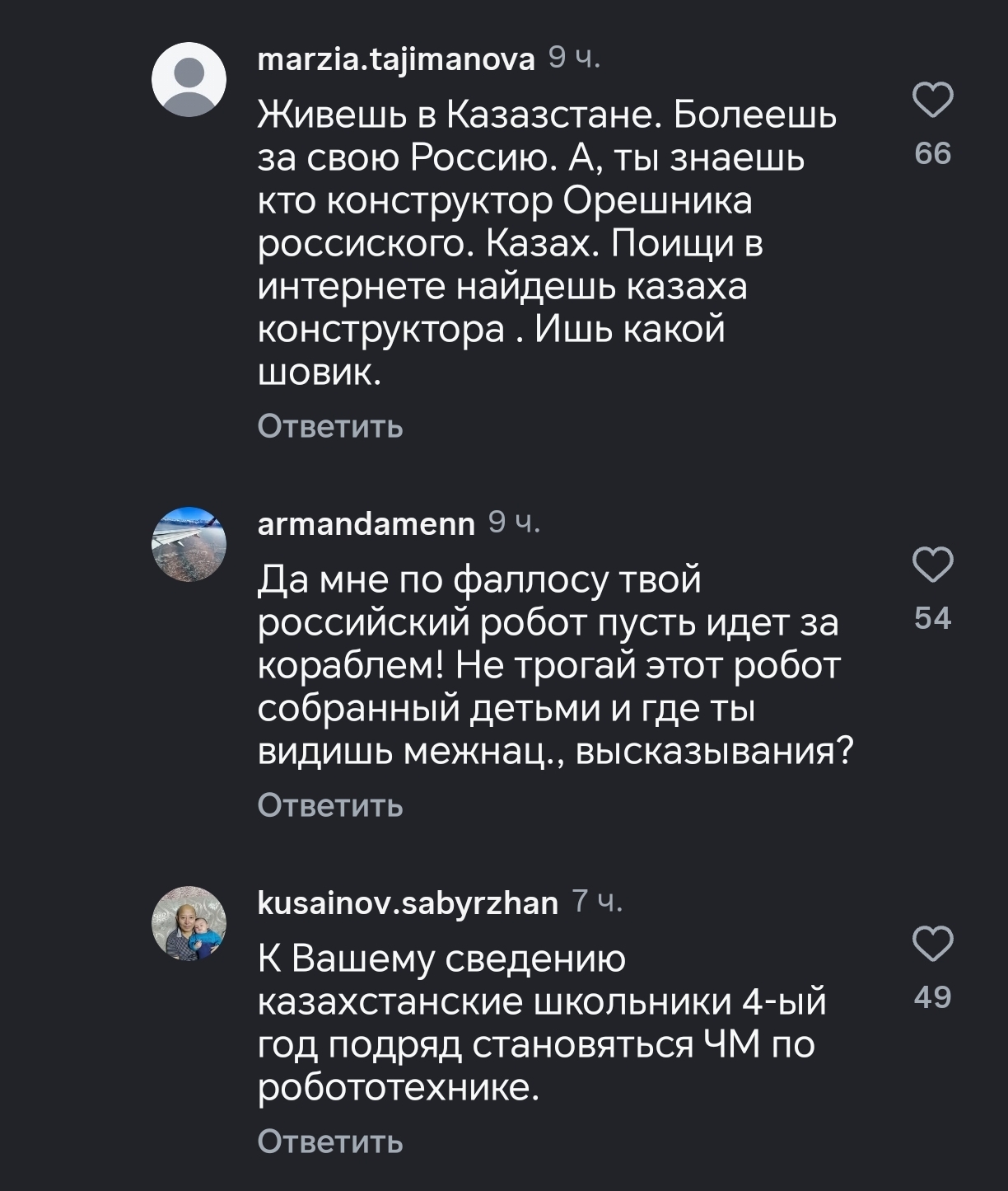 Недавно в Астане прошли соревнования по "робототехнике" казахстанский школьник вывел на сцену якобы собранного своими силами гуманоидного робота и заставил танцевать. Комментарии ликуют, казахи впереди планеты всей, Россия выкуси(главная боль видимо)