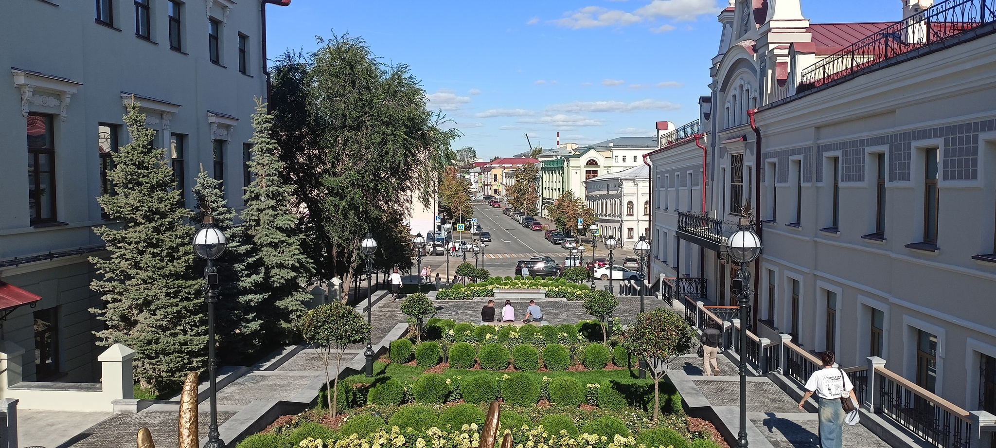 Осенняя Казань продолжает баловать нас зеленью, и я решил не терять такой возможности насладиться уходящим летом. Сегодня отправился в самый центр Казани чтобы посмотреть на новый фонтан и отреставрированную улицу Миславского. По-моему сделано прекрасно. Реконструкции подверглись фонтан, фасады двух зданий (ул. Миславского дома № 4 и № 1), зелёная часть и перила. Сделать фотографии у фонтана было непросто, из-за большого внимания к статуе Казанского дракона. У статуи дракона ежесекундно появлялись новые люди желающие сделать фотографию. В какой-то момент мне удалось сделать кадр без посторонних, качество выбранной сцены в принципе терпимое.