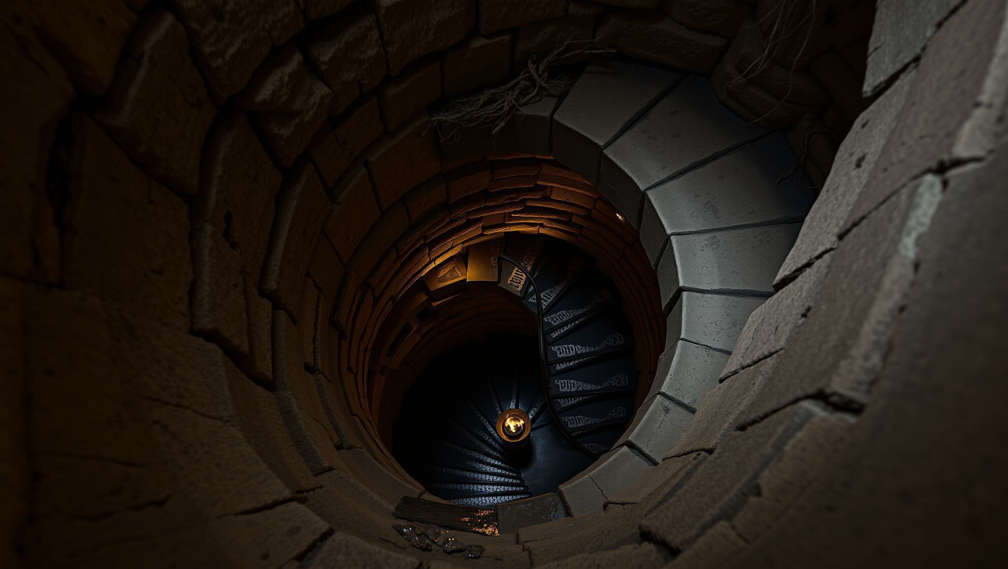 Вскоре мы добираемся до башни и встаем перед выбором. Винтовая лестница ведет одновременно вверх и вниз. Мы переглядываемся.