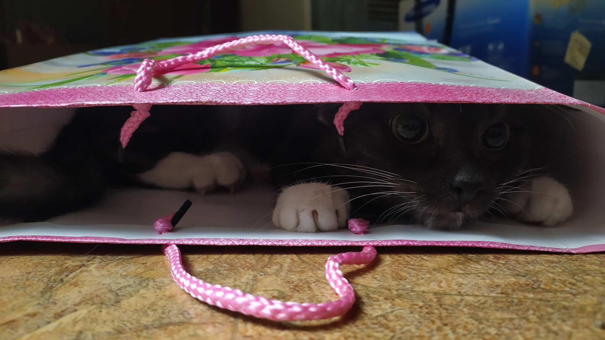 Наша Буська обычно прячется под одеяло, в бумажный пакет или в коробку. От гостей - на шкаф.