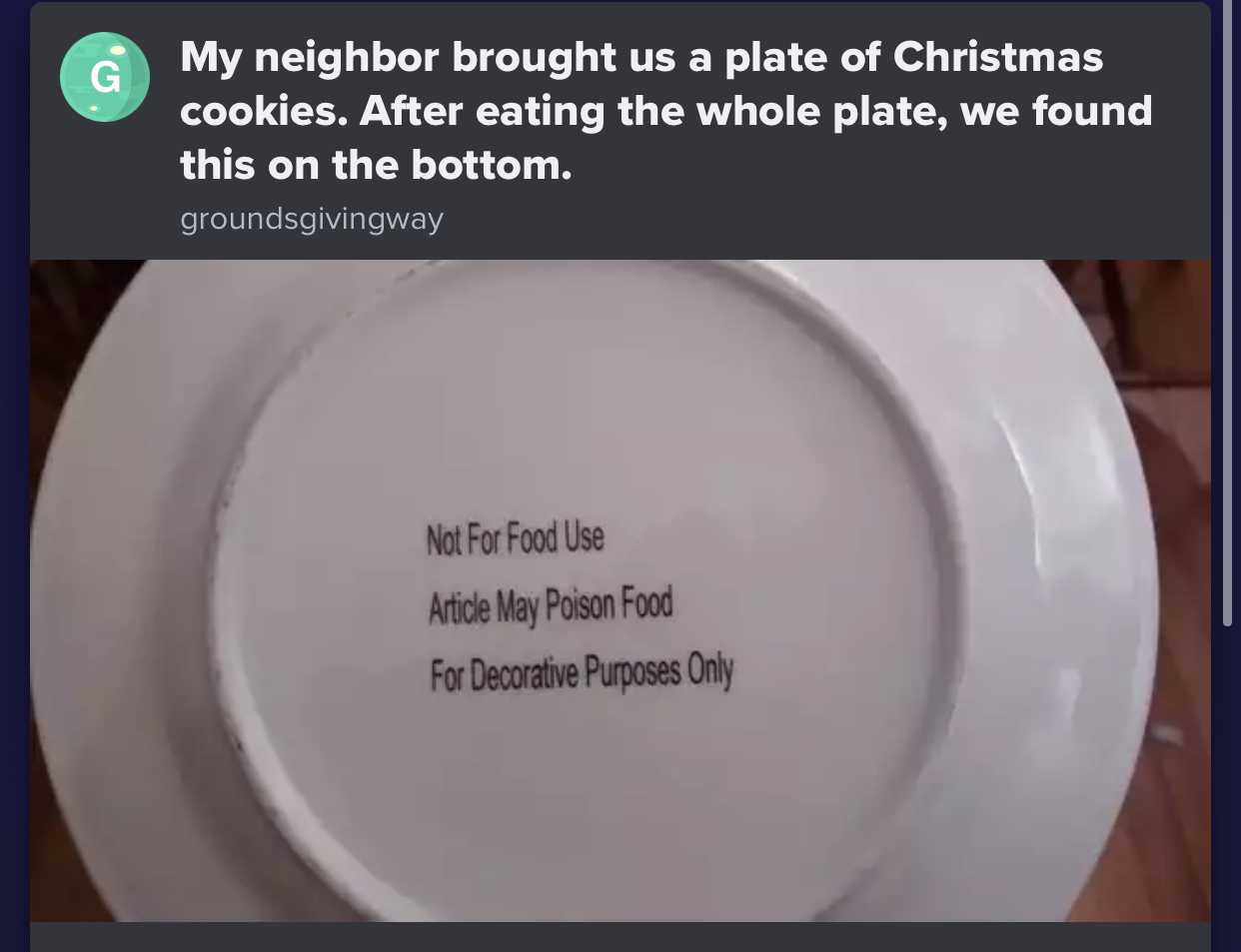 Моя соседка принесла нам тарелку рождественских печенек. После того, как мы их съели, вот что мы увидели на дне: