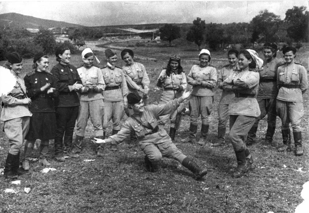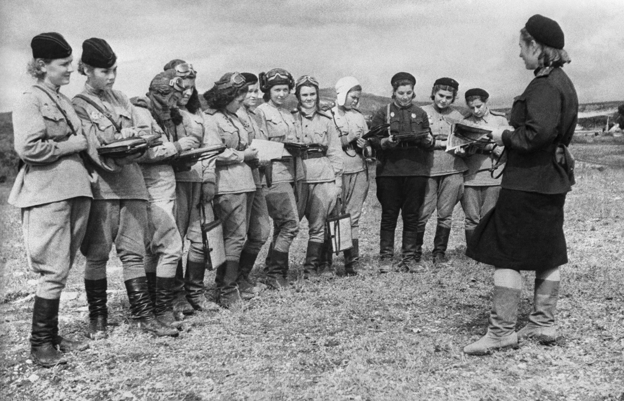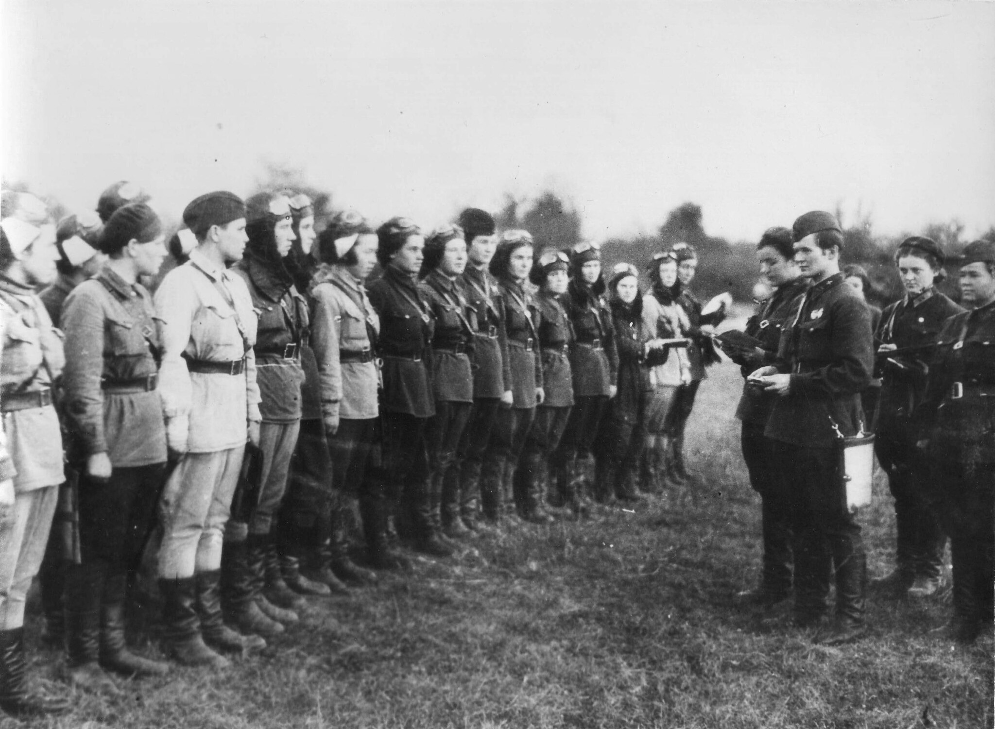 Летчицы 46-го Гвардейского Таманского Краснознамённого ордена Суворова III степени авиаполка ВВС Красной Армии во время подготовки к Параду победы, июнь 1945