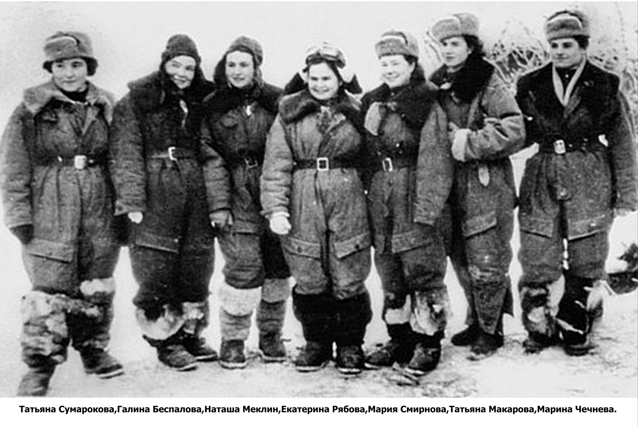 Герои Советского Союза штурман 46-го гвардейского ночного бомбардировочного авиаполка Руфина Гашева (слева) и Наталья Меклин у самолетов По-2. Одни из самых результативных летчиков советской военной авиации по боевым вылетам — 848 и 980 соответственно