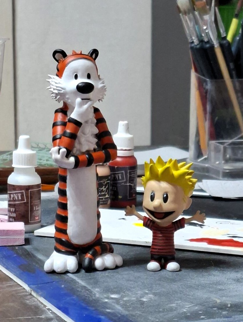 Помните "Классный журнал"? Был такой, с комиксами и прочей детской развлекухой. Был там комикс про Кельвина и Хоббса, наверное самый лучший комикс из всех. Я очень люблю этих персонажей и их приключения, потому сделал себе фигурки этих крутых парней. Очевидно я немного ошибся в масштабе фигурок относительно друг друга, но в следующий раз всё получится отлично!