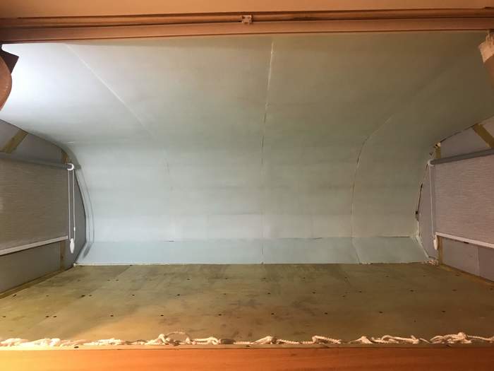 Еще со времен первого кемпера у меня оставался большой отрез самоклеющегося карпета бежевого цвета. Решил оклеить им. Тут самое главное не торопится. Клей очень прочный и если приклеить не так то оторвать получится только с куском утеплителя)).