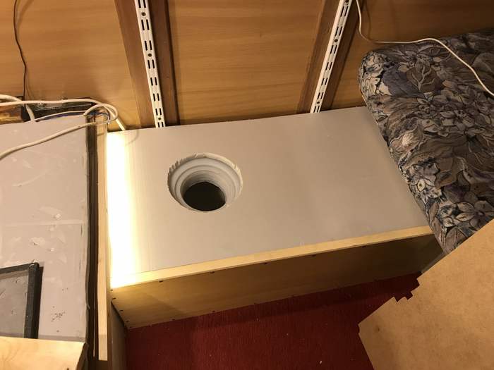 Второй вывел в сторону стола и основного помещения. Над ним сделал полочку для сушки мелких вещей типа перчаток, шапок и тд. Виднеется мусорное ведро. Пока ему не нашел место. Планирую на двери повесить. Внизу под полкой тоже будет все зашито. Вообщем, пока в процессе))