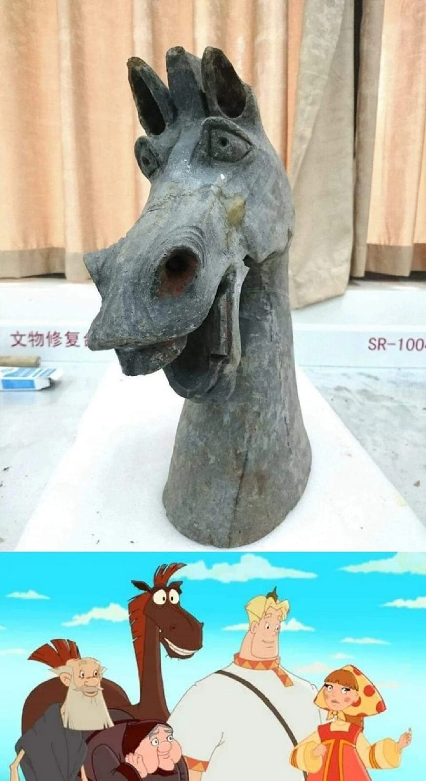 497 t.dzen Керамическая голова лошади возрастом 1800 лет 3 года назад Династия Хань (202 г. до н.э. – 9 г. н.э., 25–220 г. н.э.), сейчас находится в музее Саньсиндуй в Китае Китай История Скульптура Конь Гораций Три богатыря 7 2 2 1 Ещё 0