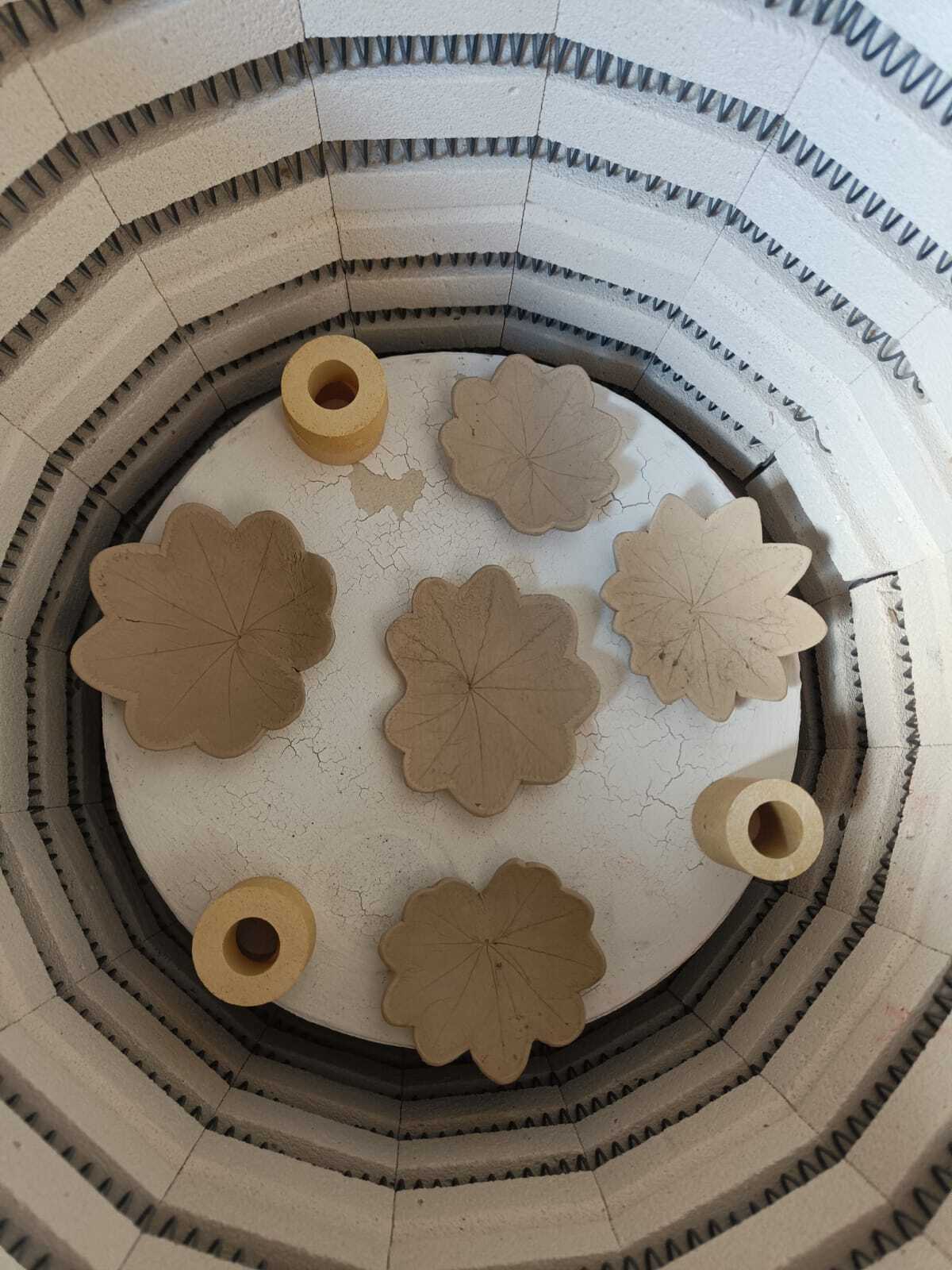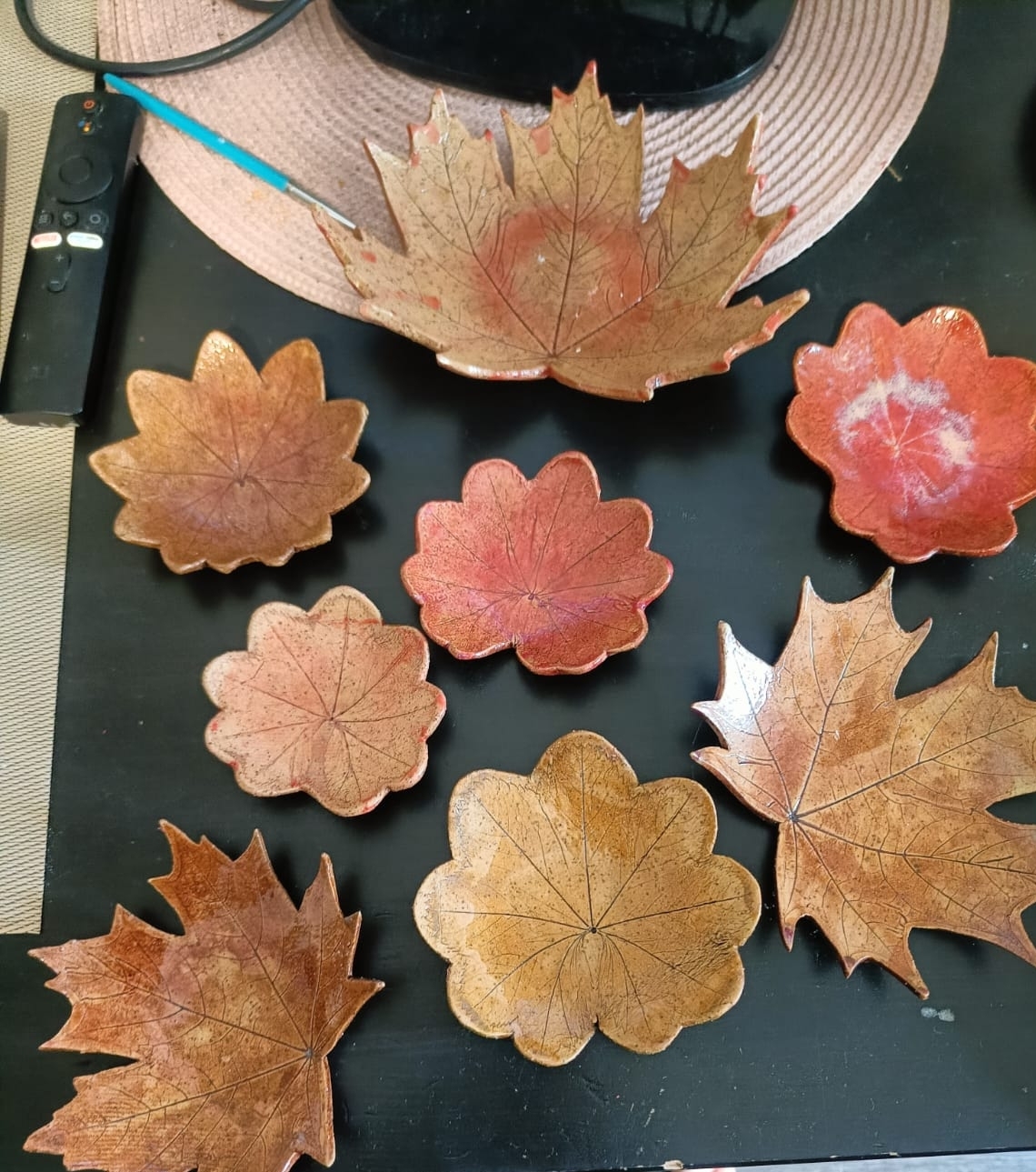 3) Оставляем на естественную сушку изделия, перед утельным (первичным) обжигом снимаем листики. Если что-то по мелочи останется, то не критично, так как в печи выгорит.