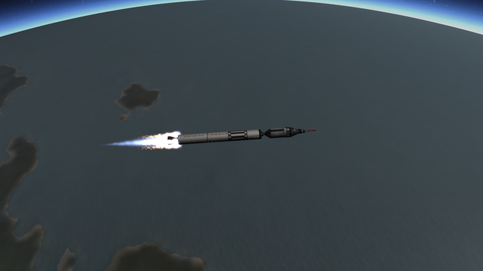 В итоге, новая РН, получившая название Р-4 "Аирбёрн" успешно прошла огневые испытания первых двух ступеней и вывела капсулу с Джебом на суборбитал. Облетев пол-планеты, Джеб успешно плюхнулся в заданном районе.Кроме того, модернизированная Р-1М-1Т (Р-1 с двумя твердотопливными бустерами и укороченной второй ступенью) вывела СканСАТ-спутник "КербоСАТ-1" на низкую полярную орбиту. К сожалению - со второго раза, на первом пуске взорвался топливный бак первой ступени через несколько секунд после пуска. Вообще технология использования ограниченного числа РН (а не строительства РН под каждую конкретную ПН) хорошо служила мне и раньше, так что, думаю и здесь послужит.