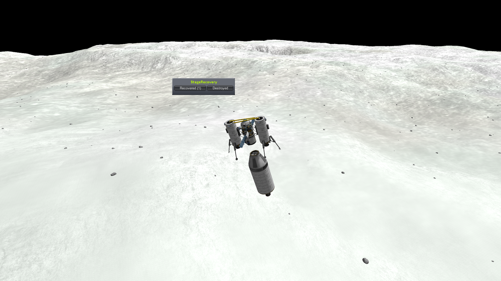Начнись утечка на пять минут позже - и я бы испытал эпик фейл, потому что сбросил бы перелетную ступень. Но мы же кербальские инженегры! Не хватает дельты на посадку и взлет? Будем садиться на перелетном блоке, в нем ещё осталась дельта!