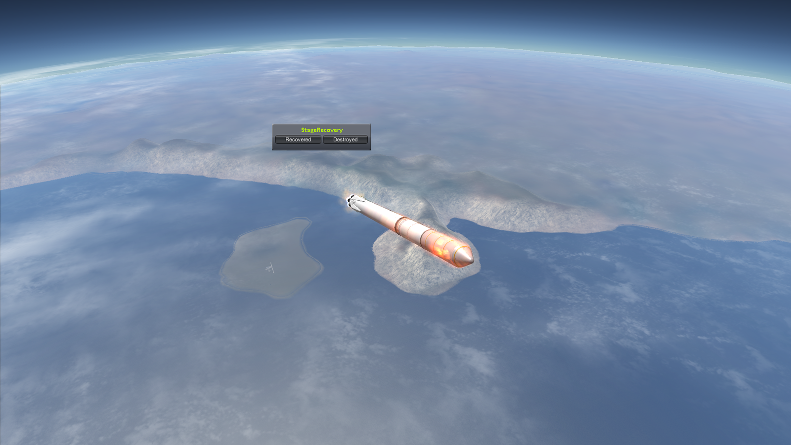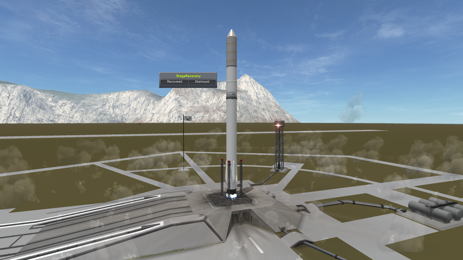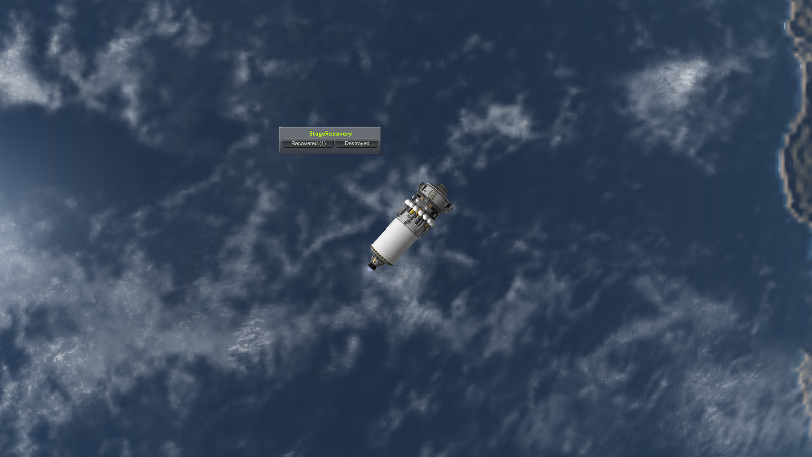 В итоге я практически полностью сел на перелетном блоке, сбросив его перед самым касанием, и сел на взлетно-посадочной ступени. От переворота меня спас мехджеб с режимом дифференциальной тяги.
