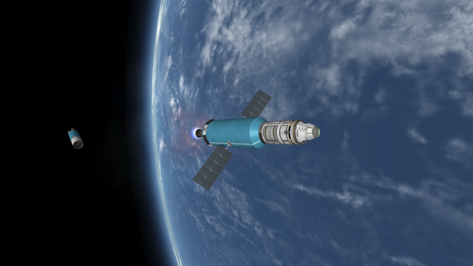 Перелет прошел удачно, правда, на этапе сближения я врубил одной из солнечных панелей "Аполло-3" по корпусу "Сирены-2", в связи с чем панели пришел толстый полярный лис. Но не страшно, есть вторая панель, есть резервный РИТЭГ, их хватает на работу СЖО и САС. Как обычно, пилот вышел в открытый космос и пристыковал "Сирену-2" к "Аполло-3", чтобы ученому не лезть в космос лишний раз. Затем пилот перешел в "Аполло-3" и подал команду на расстыковку.