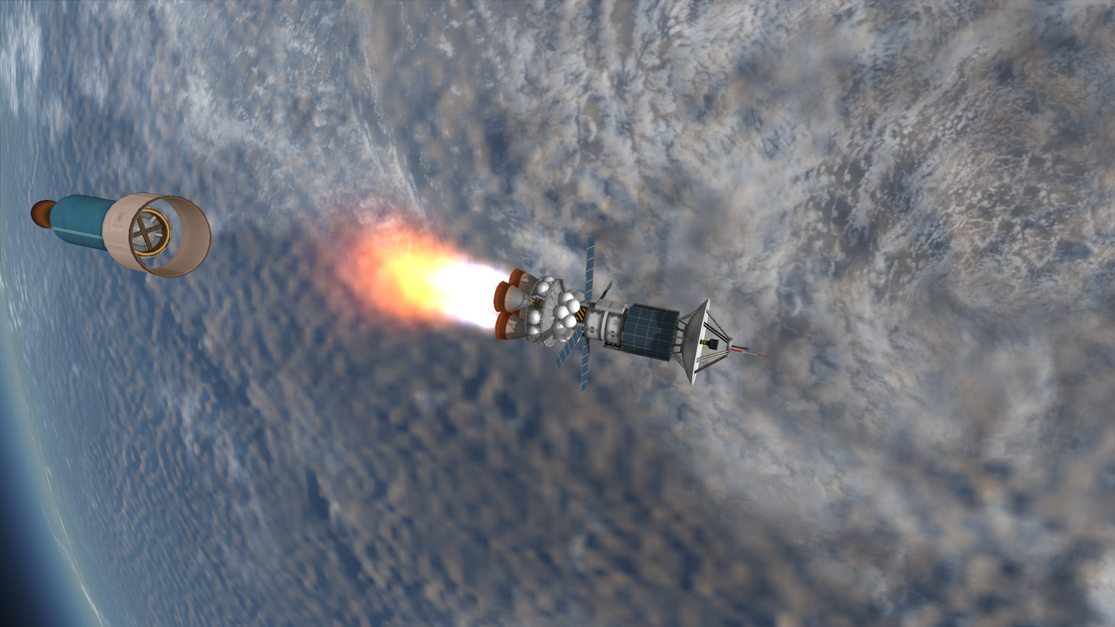 Затем произведена дозаправка "Сирены-2" монотопливом от "Аполло-2", вывод связки "Аполло-2"-"Сирена-2" двигателями "Аполло" на эллиптическую орбиту, съем науки и возвращение связки на НОО Цети. После чего заправленный от "Аполло-2" модуль "Сирена-2" ( вся серия "Сирена" - монопропеллентная) остался ждать посадочную миссию, а "Аполло-2" вернулся на Гаэль. Минус посадки "директ брейком" с Цети - экипаж гарантированно вырубается от перегрузок.