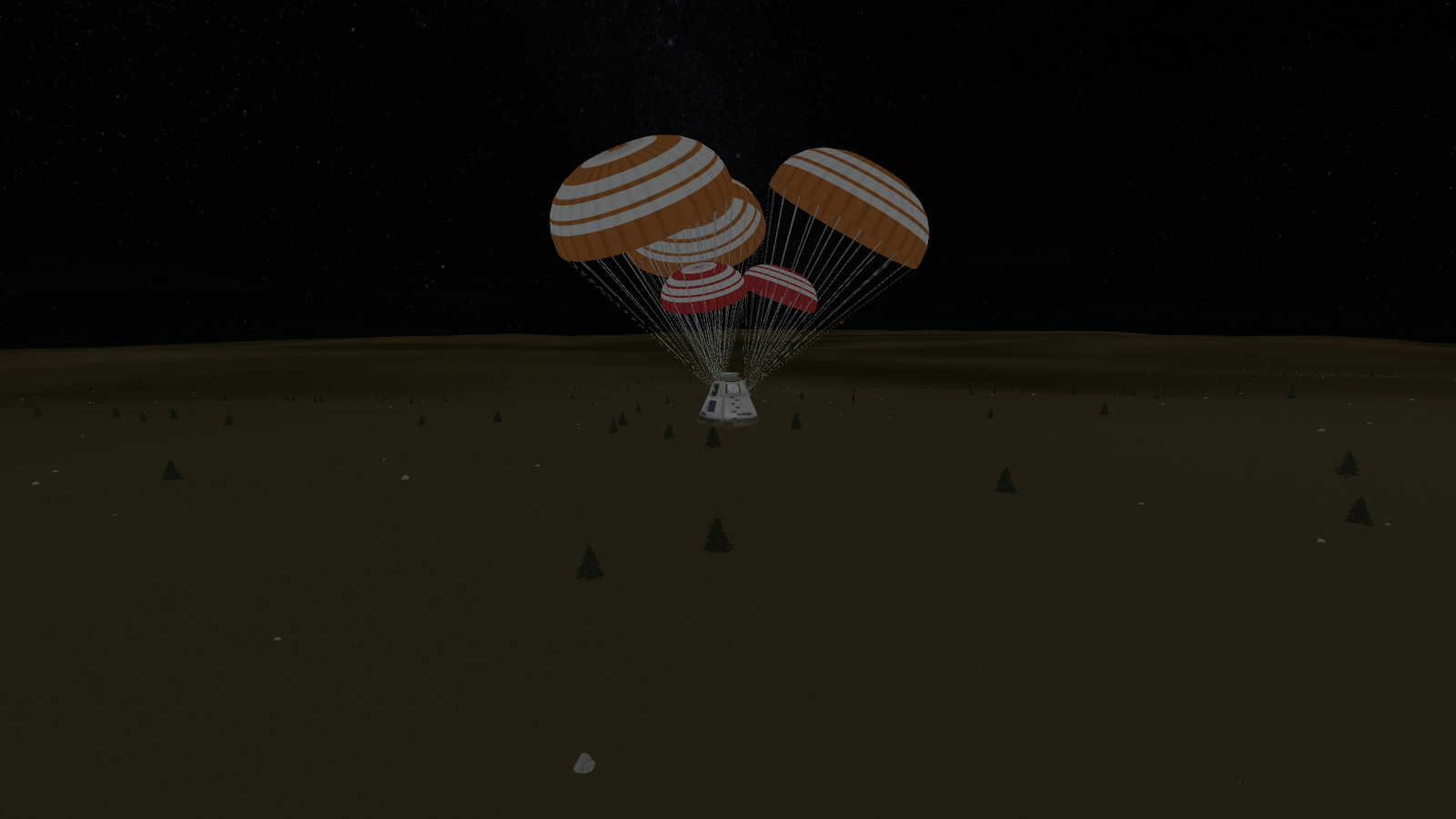 Остатков топлива во взлетно-посадочной ступени хватило, чтобы доползти до стратосферы Гаэля. Восемь витков - и мы сели, причем начиная с пятого в атмосферу входил уже отключившийся зонд, потому что солярки отгорели ещё на первом витке аэробрейкинга. Но парашют раскрылся и зонд сел. Я так нервничал, что даже забыл проскриншотить миссию до конца.