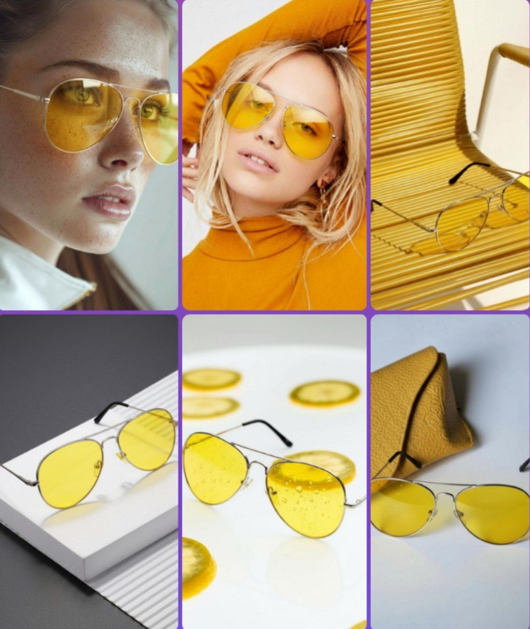 Фото_1 - основной продукт. Взять форму оправы, материал (металл, пластик и т.п.), толщину рамки, детали переносицы, носоупоры, дужки, кончики дужек, цвет и свойства линз (оттенок, прозрачность, зеркальность, поляризация).