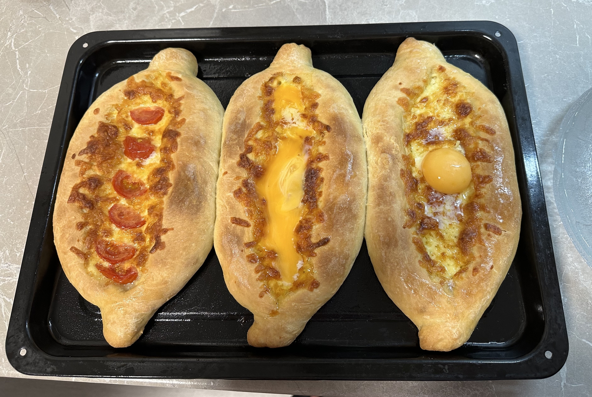 Он вообще очень любит именно хачапури по-аджарски, и, наконец, дождался того, что я приготовила их дома.