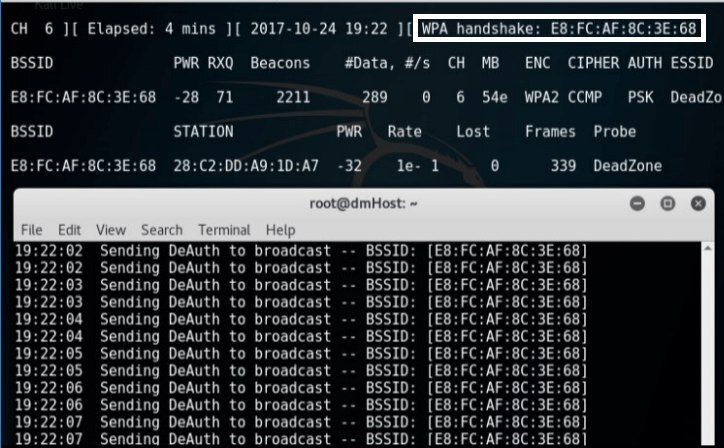 Перехват рукопожатий - это одна из самых базовых атак, позволяющая получить пароль от беспроводной сети. При авторизации устройства в беспроводной сети, устройство и точка доступа обмениваются пакетами, называемыми handshake, то есть, рукопожатие. В этих пакетах, кроме всего прочего, передается пароль для доступа к беспроводной сети в зашифрованном виде. Сама атака по перехвату рукопожатий состоит из трех этапов. Сначала, устройство с функционалом инъекции пакетов отправляет через точку доступа пакеты deauth, которые заставляют все подключенные устройства переподключиться к точке доступа. Вторым шагом выполняется перехват рукопожатий, которые происходят при переподключении. А третьим этапом производится дешифровка перехваченных пакетов для извлечения из них пароля от беспроводной сети.