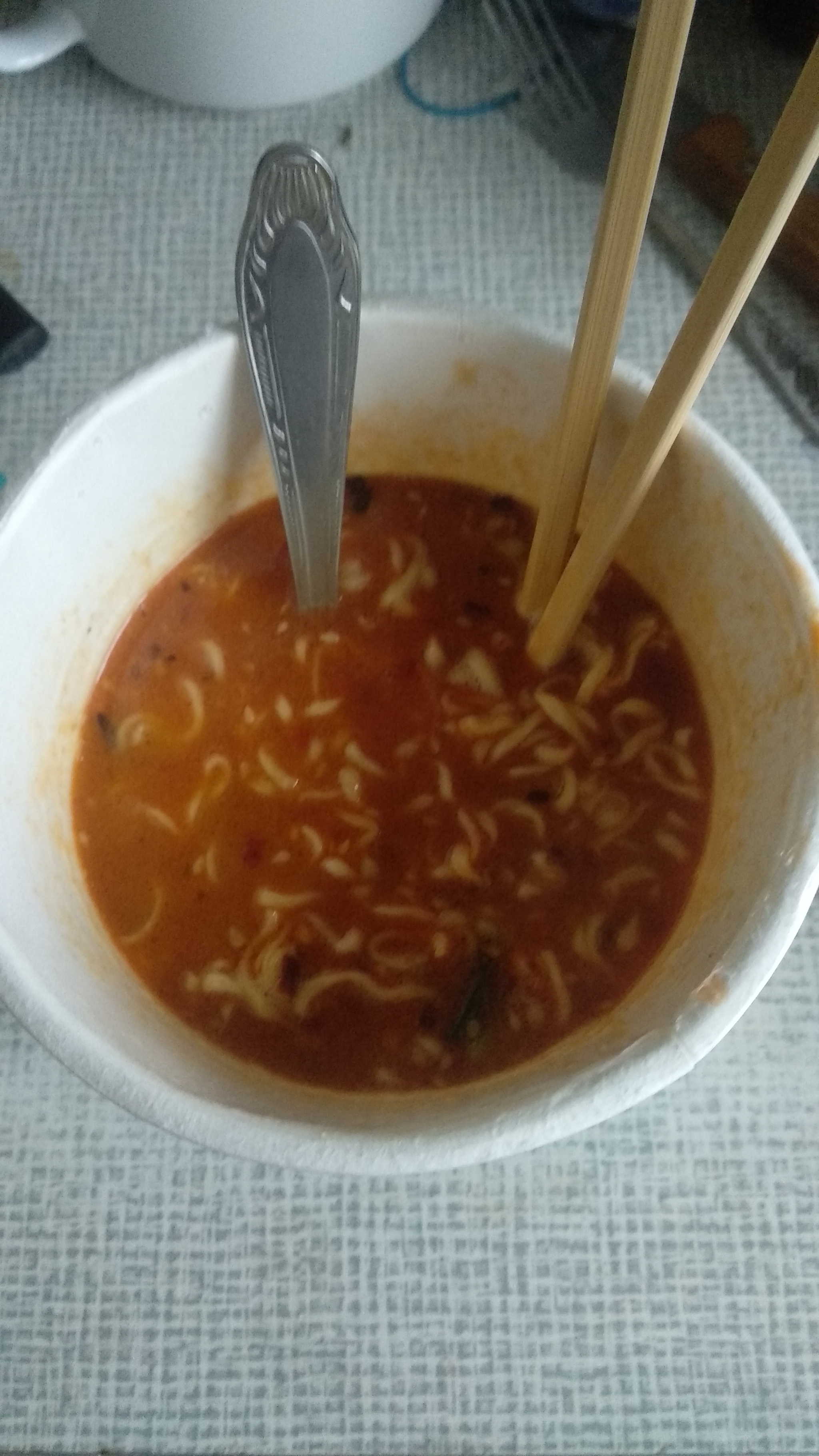 В итоге: островатый "3 красных дошика" но насыщенный орехово-пряный бульон, который более выигрывает своим вкусом.