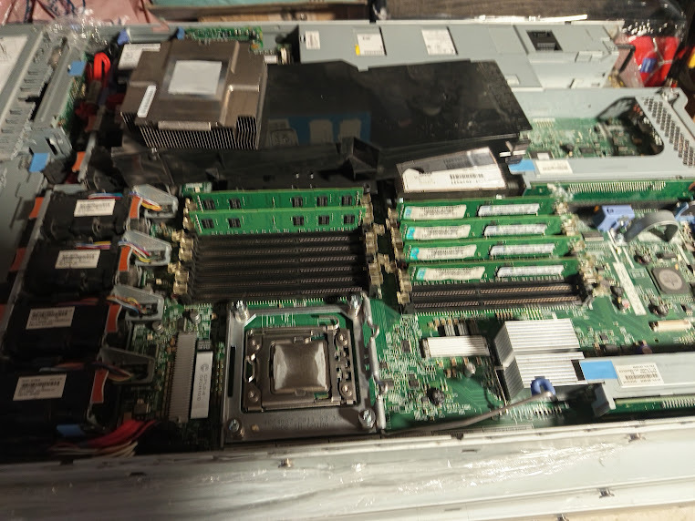 включил. Там стоят 2 проца на сокет 1366, память конечно регистровая ECC DDR3, SAS диски. Два резервированных блока питания (в некоторых стоит только один). Всё вообще без пыли как из магазина. Минус то что память там модулями по 2 или 4 Gb а диски на 146 Gb. Да и процы слабые. Но это все легко модернизируется. Если купить на али модули по 16 гигов, процы на 12 потоков, то такой сервер заиграет совсем новыми красками. И это не сильно дорого все стоит.