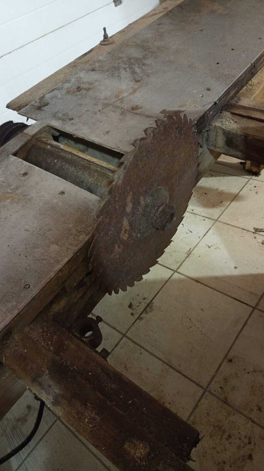 Мотор и сам вал с ножами в нормальном состоянии, все крутится, ничего не заедает. Мотор конечно трехфазный и это хорошо, 3 фазы у меня на даче есть. Верх станка, т.е. рабочие столы там в нормальном состоянии, они покрыты листовым металлом и там все ок, ножи вероятно выствлены как надо (но это я еще проверю), надо только сварить для станка раму а гнилые низы отрезать. Передача от мотора ременная, сам ремень в комплекте, т.е. нужна будет система натяжки ремня. 3 КВт это не шутки, на авито такие фуговальные станки от 750 Вт до 1.5 КВт. Так что мой их еще по мощности может уделать.