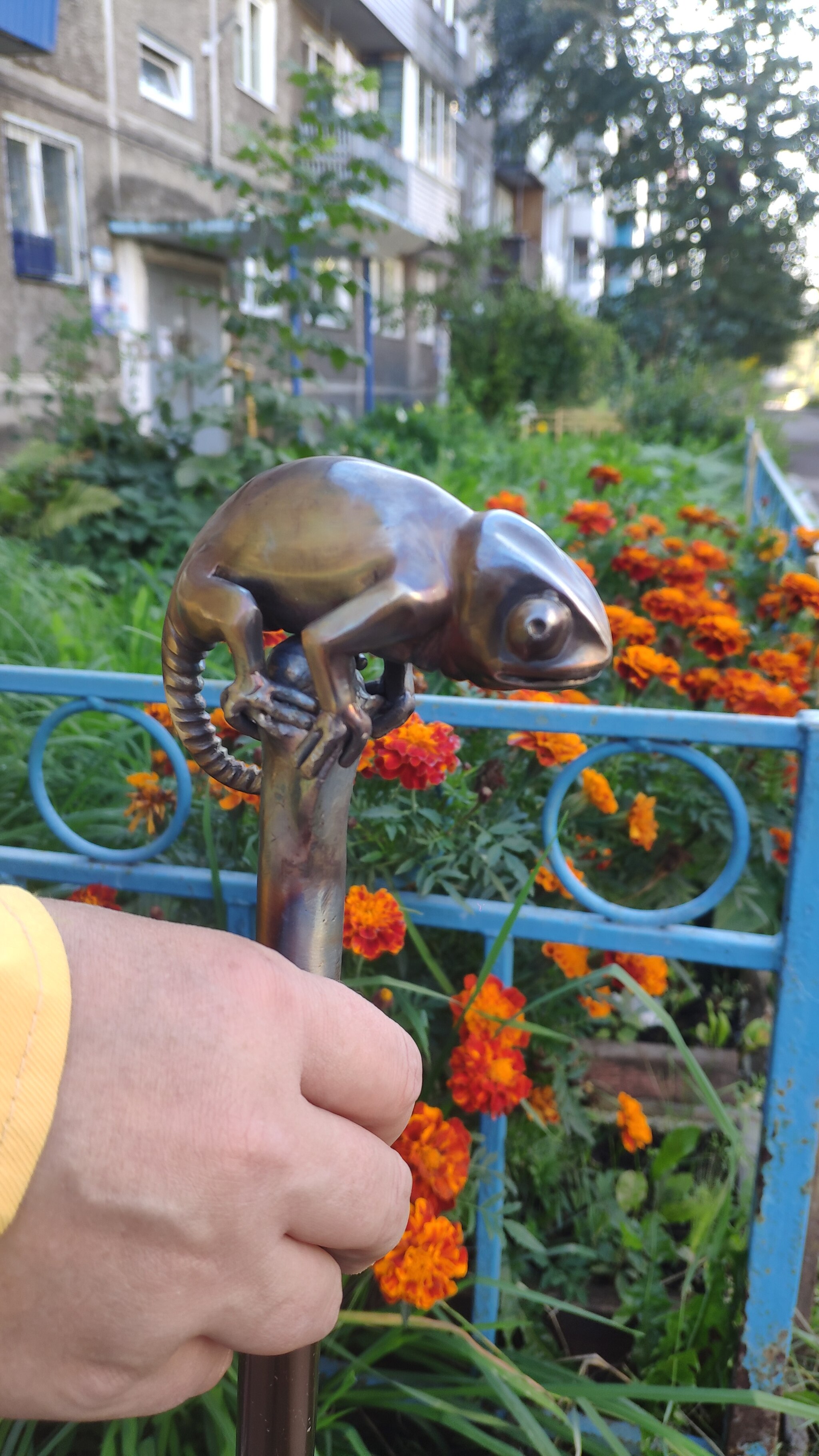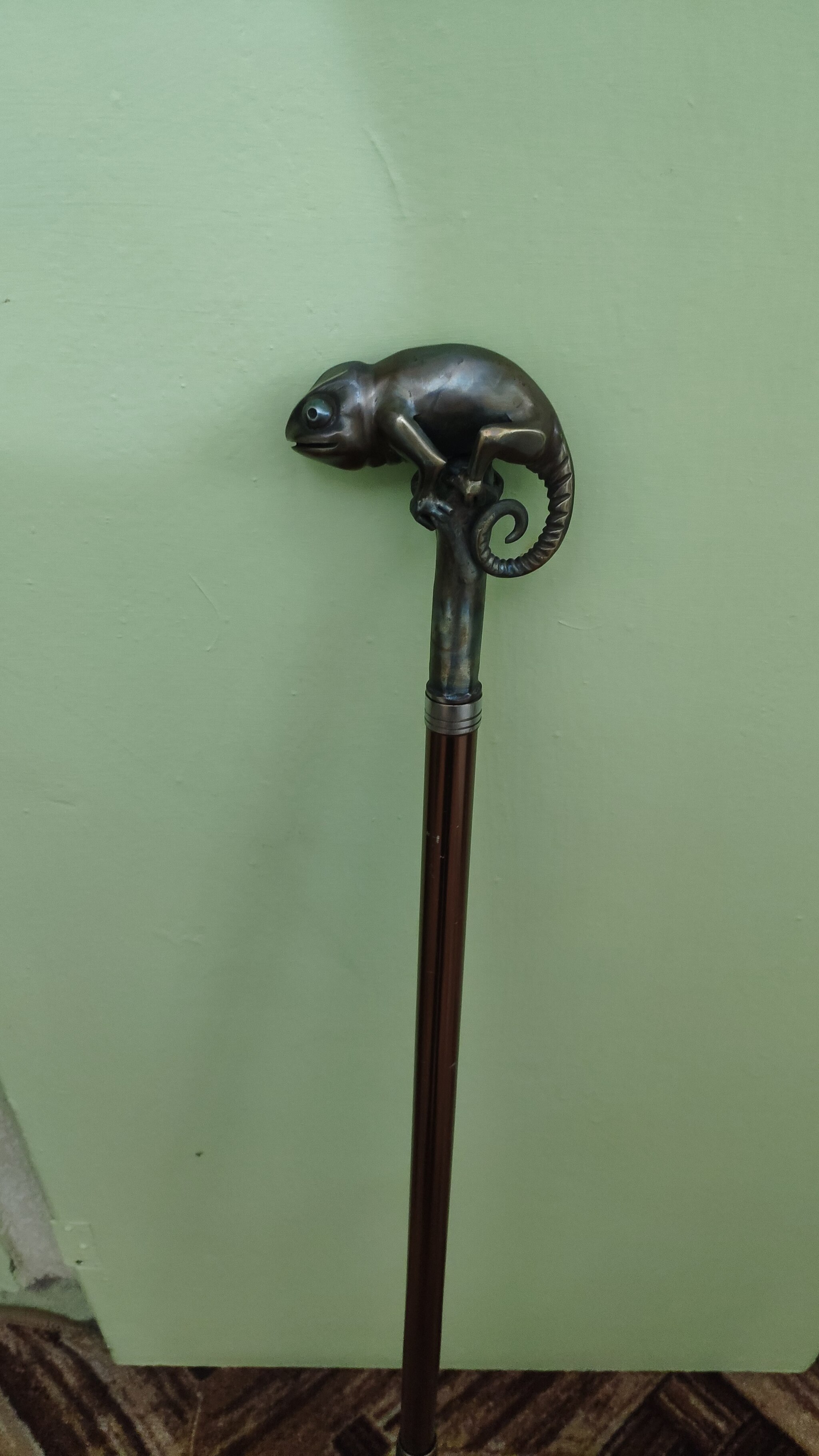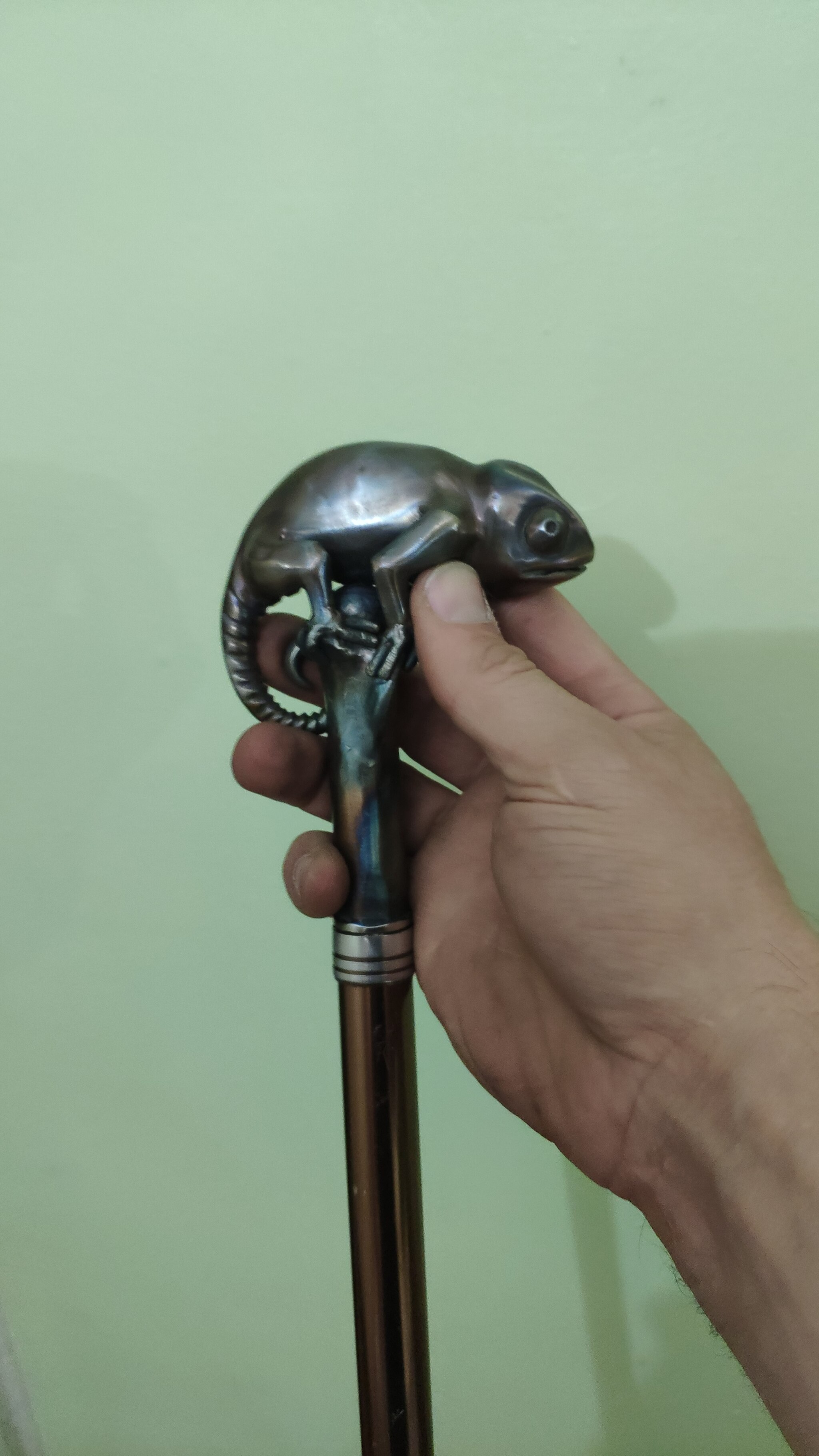 Всем привет) Попросила моя мама сделать ей на трость что-нибудь оригинальное. Она хотела чтобы был хамелеон, ну раз хотела значит будет) Полностью из нержавейки. Сварка аргонодуговая. После полировки нагрел резаком.