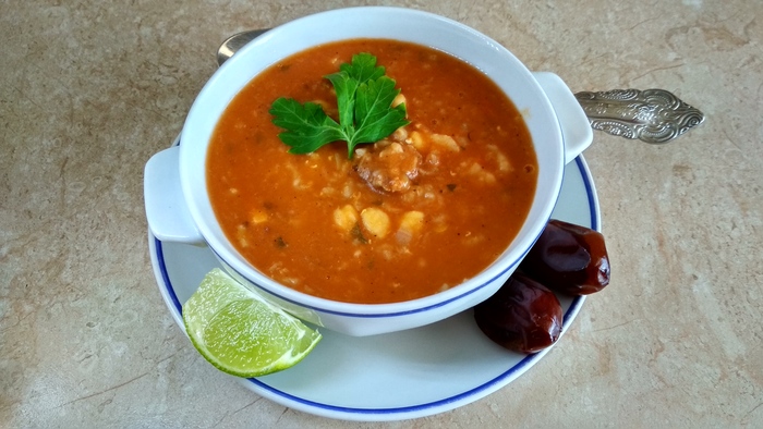 Харира, это марокканский наваристый пряный суп. Прекрасно насыщает и согревает.